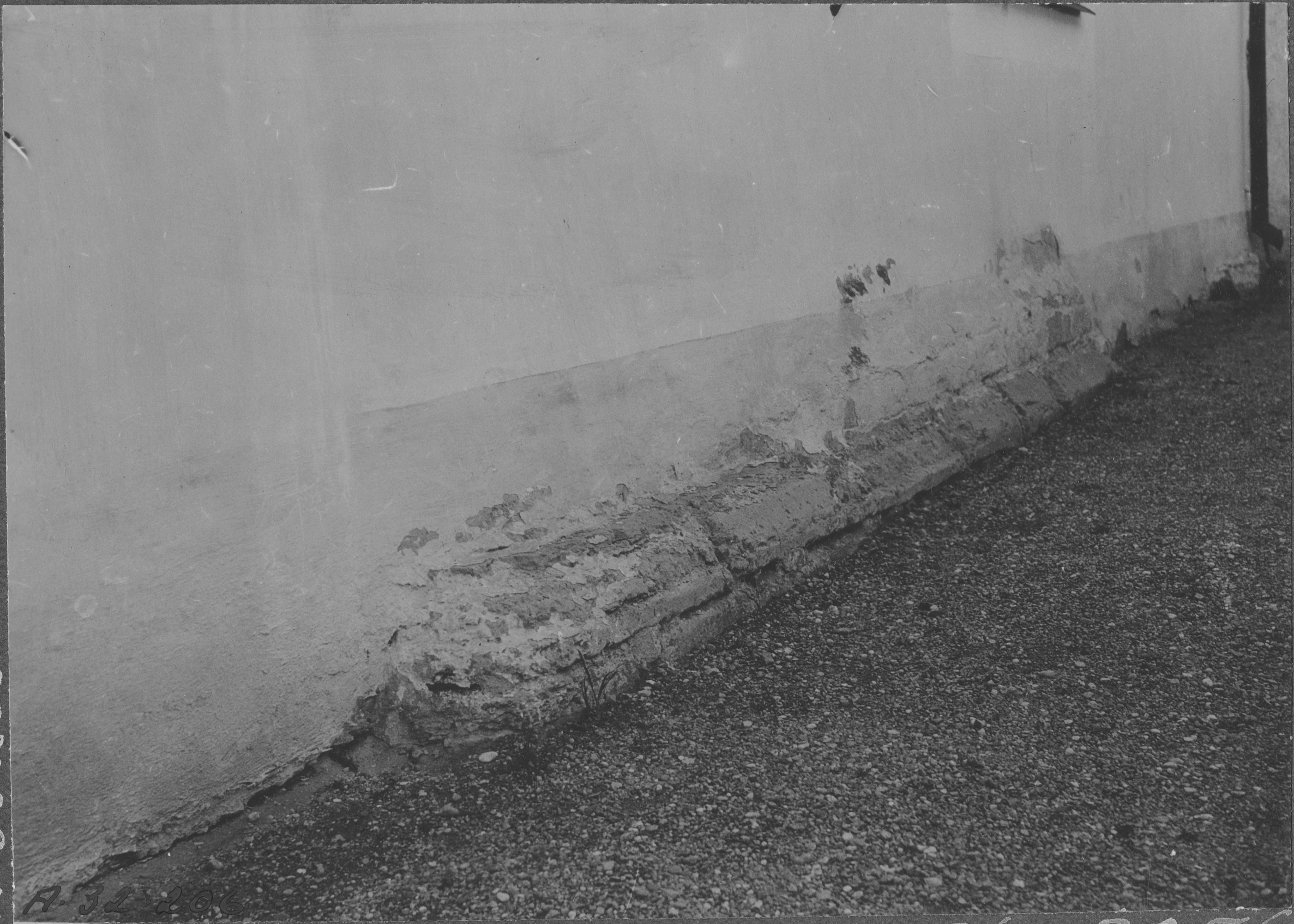 Beskrivning: Skråkantad sockel vid norra korsarmen.