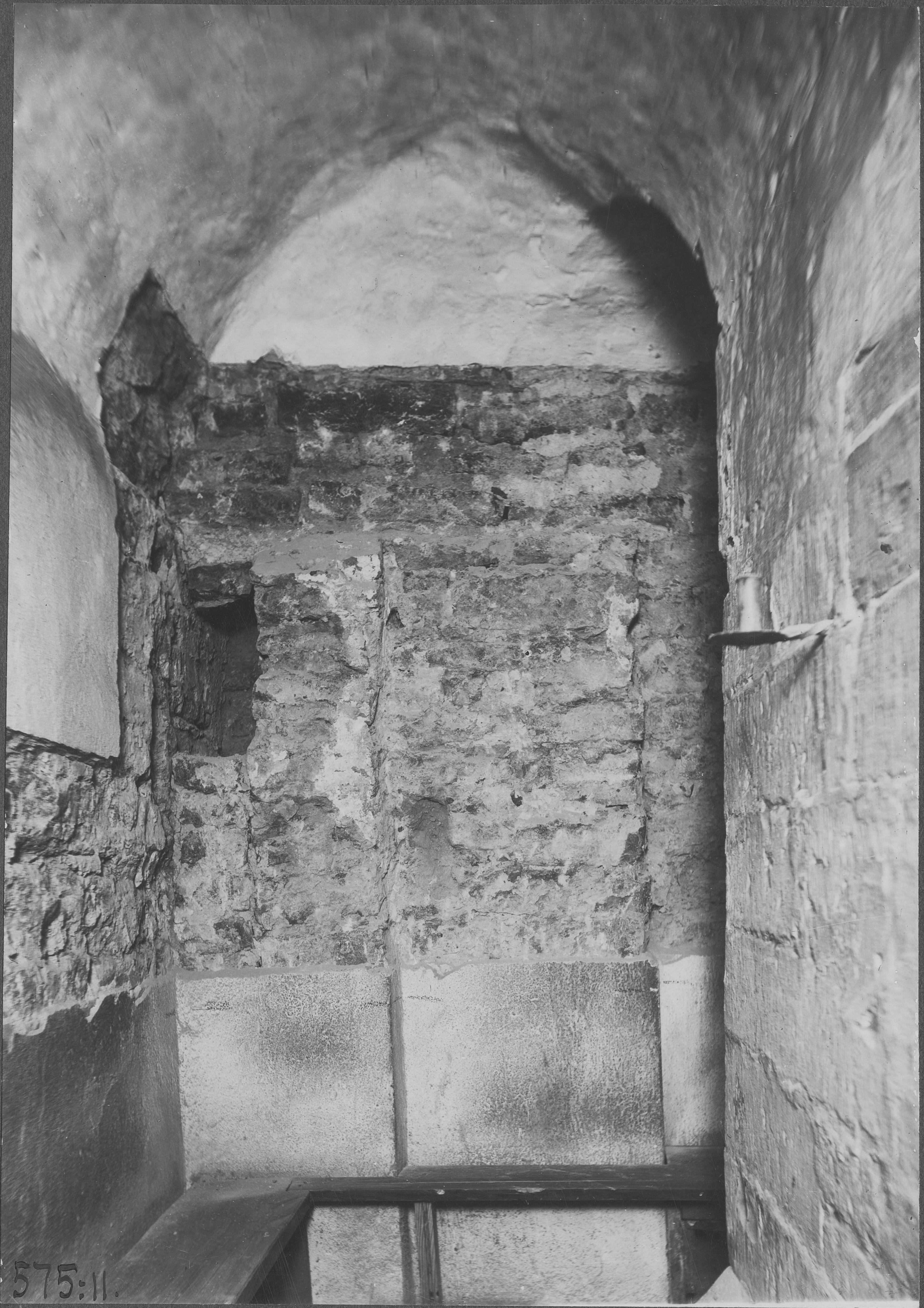 Beskrivning: I triumfbågens södra genomgång. Från det gamla korets ansats mot tvärskeppet.