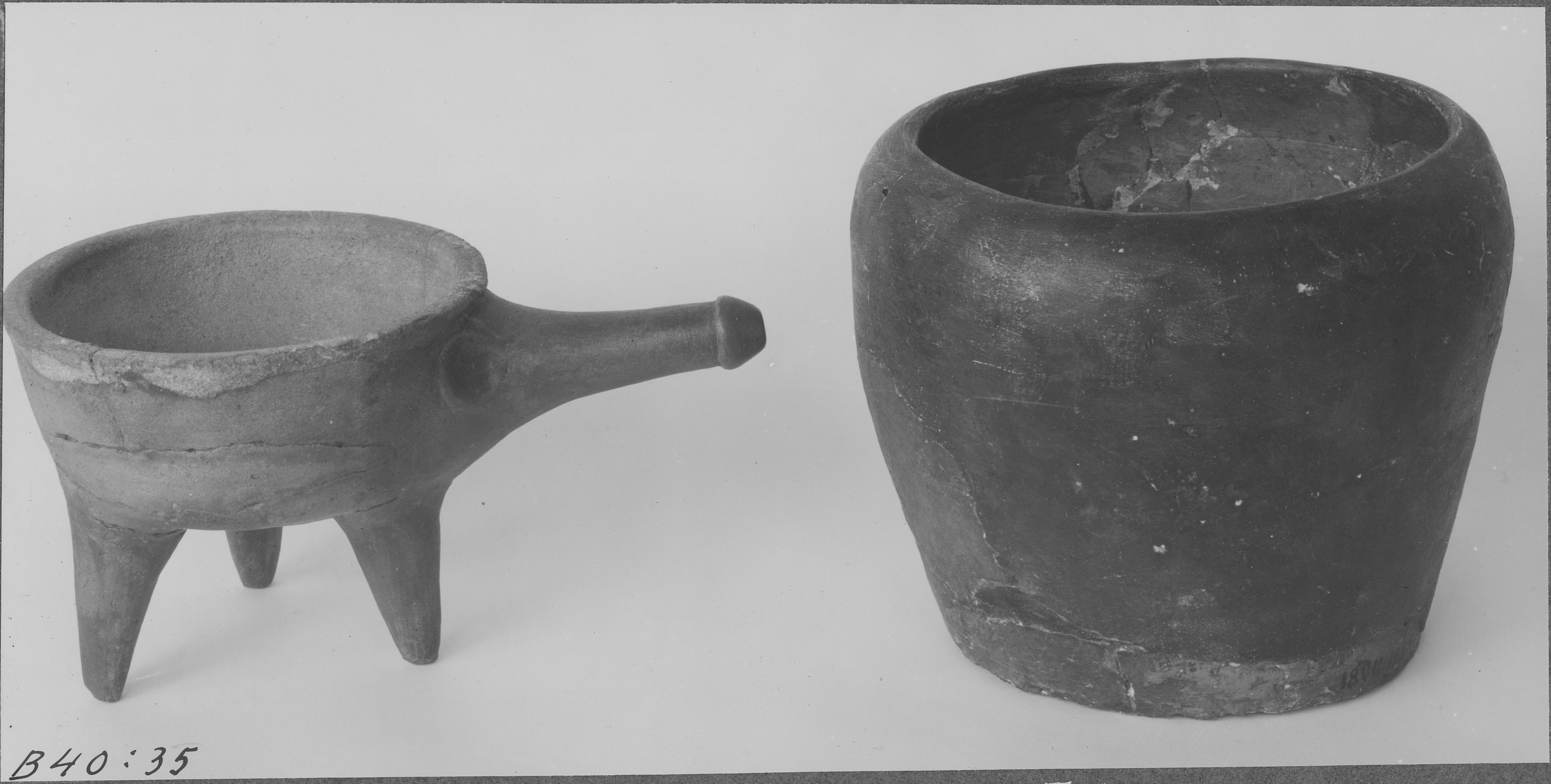 Beskrivning: Medeltida gryta och kruka av lergods. SHM invnr 18011:126A. Deposition i Vreta kloster.