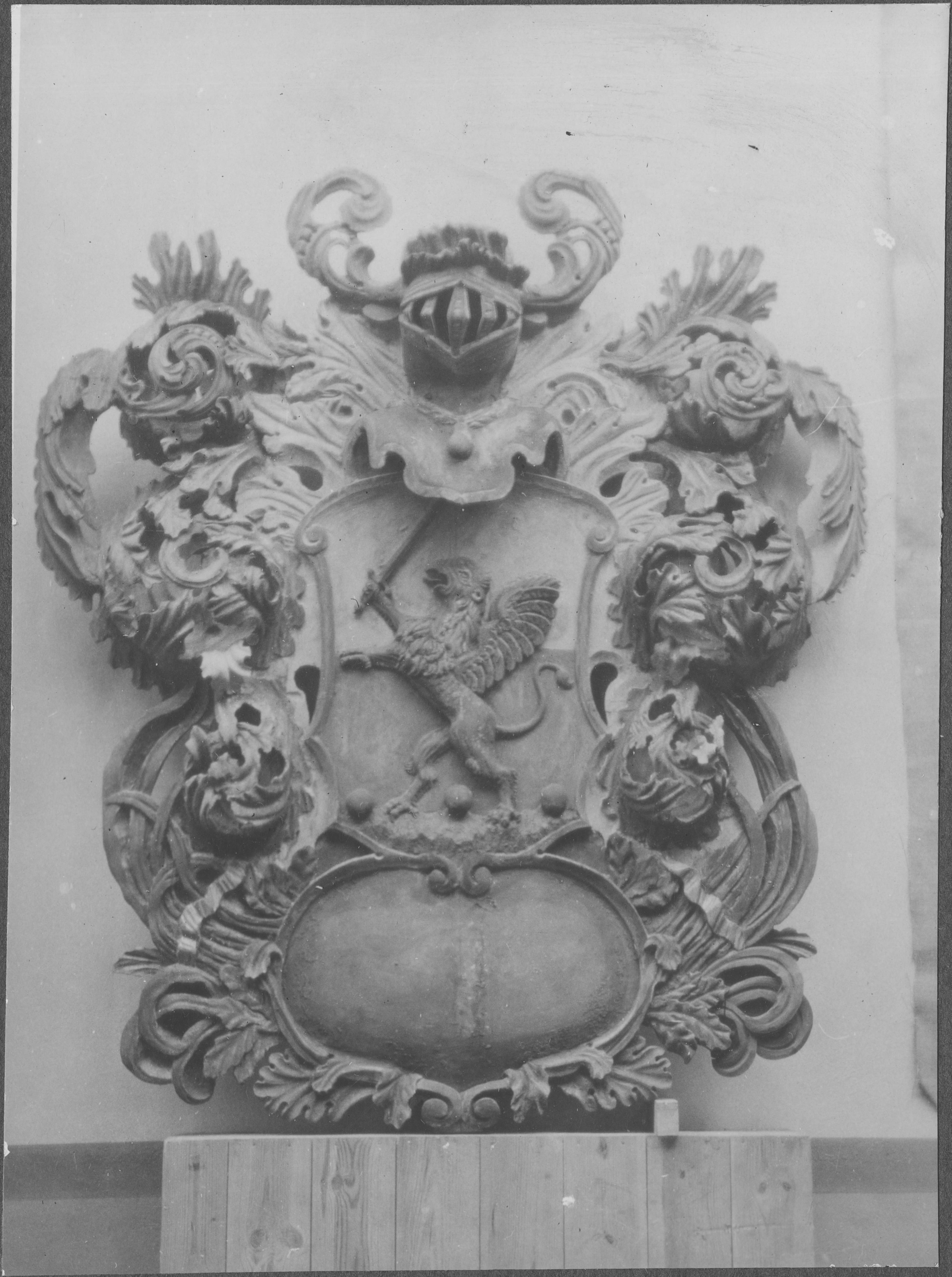 Beskrivning: Begravningsvapen för Magnus Gripensköld (b.-1680). Foto efter restaurering.