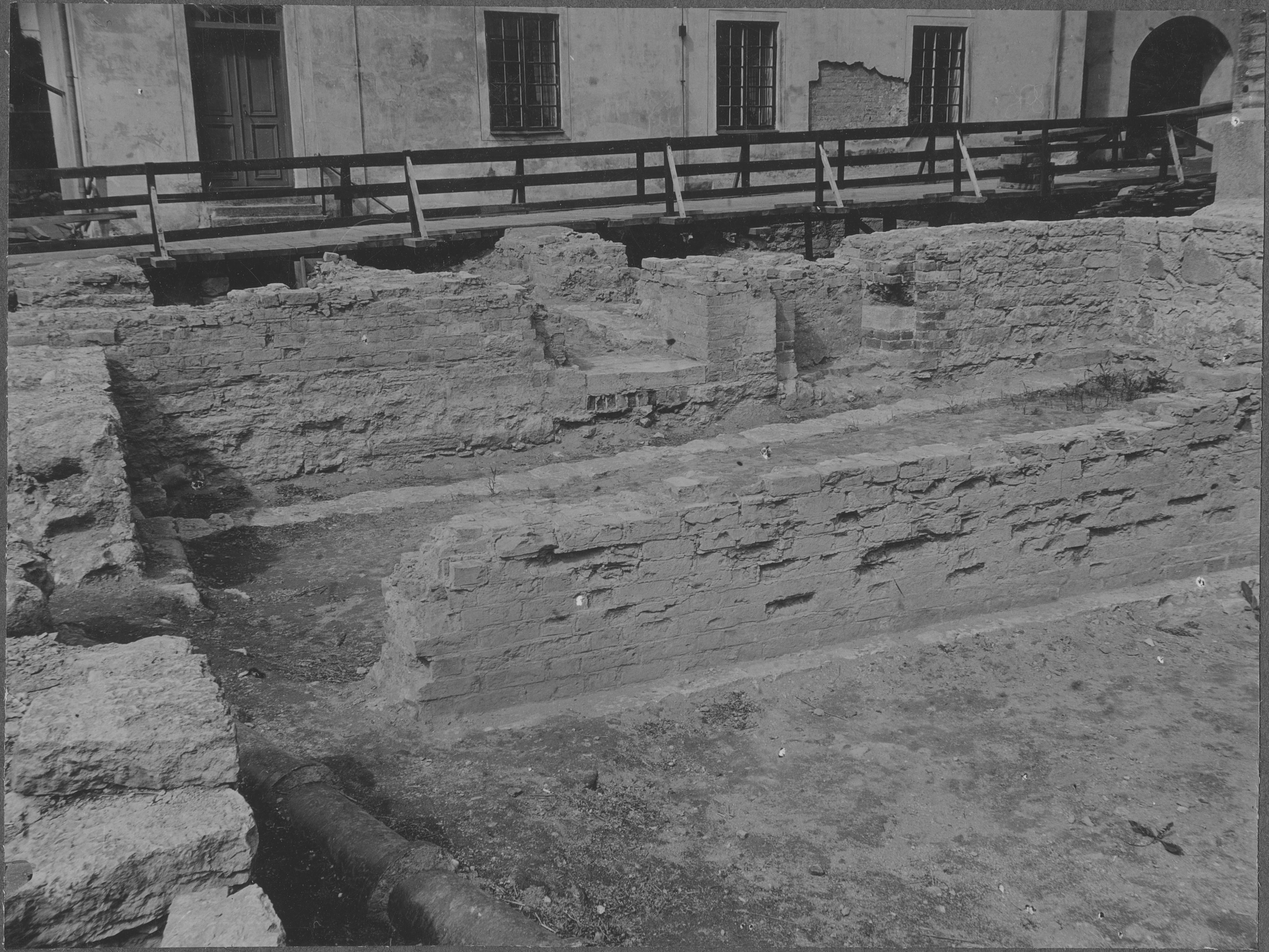 Beskrivning: Område med munkarnas sjukstuga och tryckeri, bryggeriet på nunnornas område samt talehuset på gränslinjen mellan konventsområdena.
