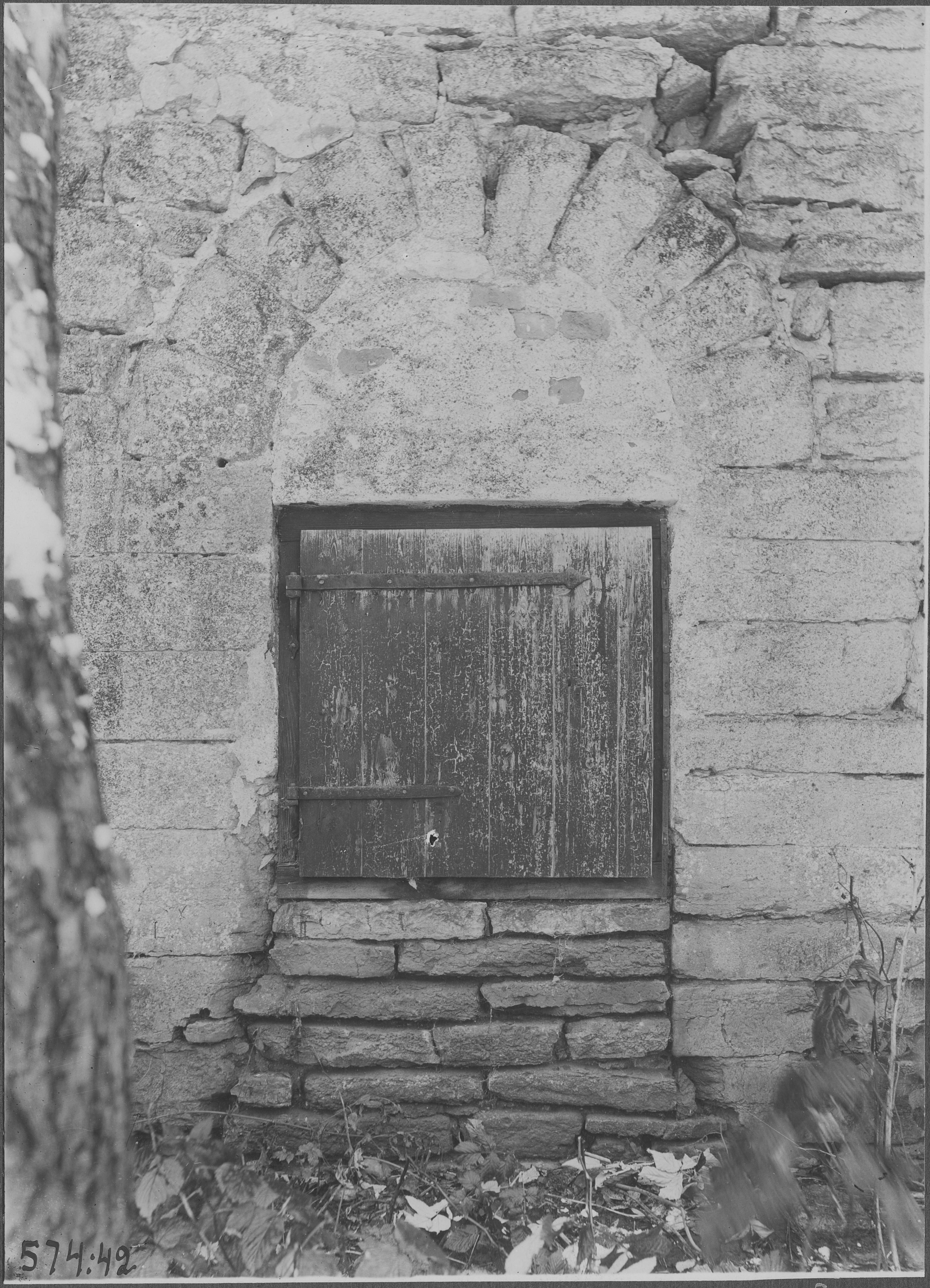 Beskrivning: Detalj av muröppning på den medeltida magasinsbyggnaden, från öster.