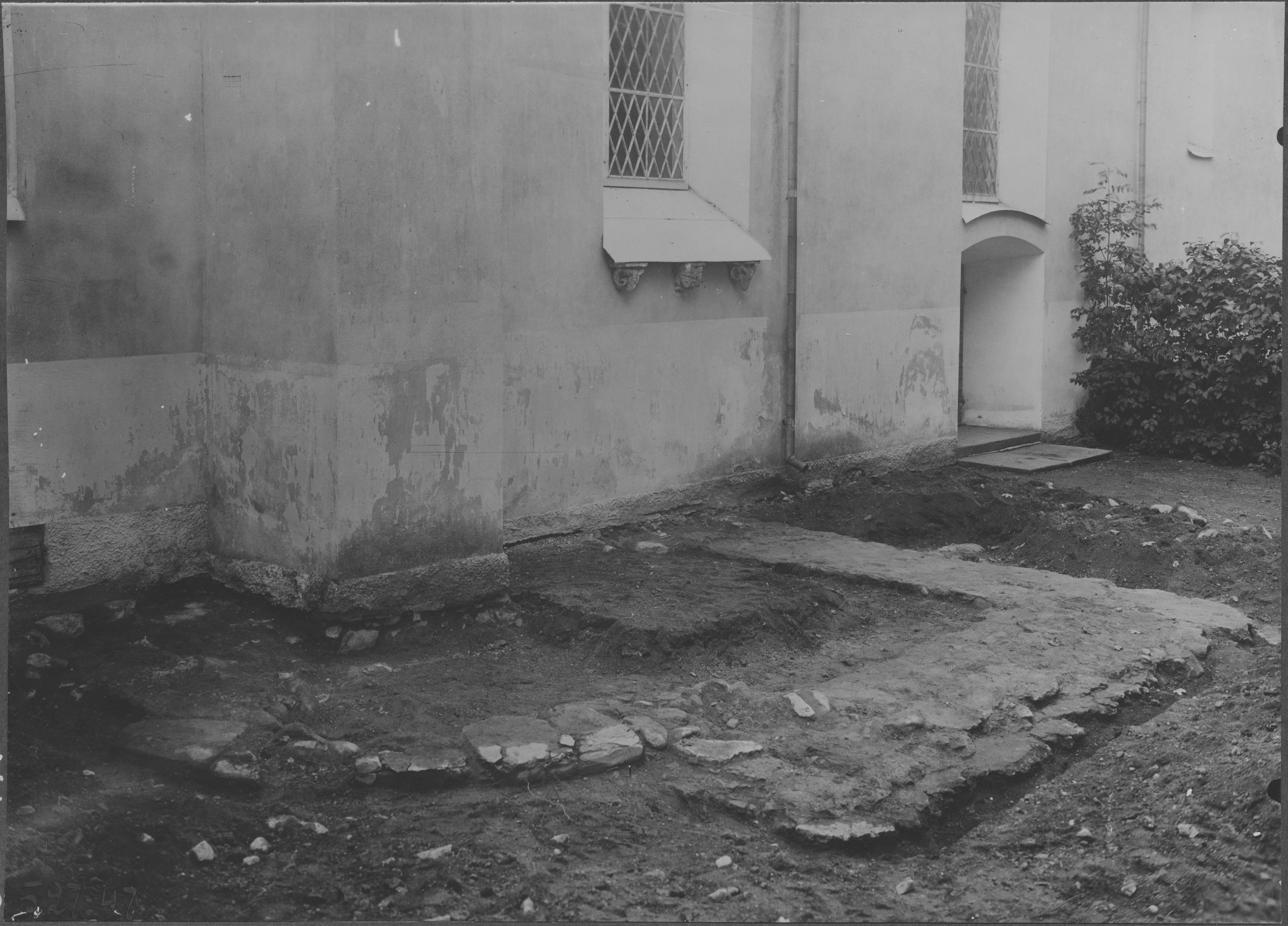 Beskrivning: Beskrivning: Utgrävningar på norra sidan av kyrkan.