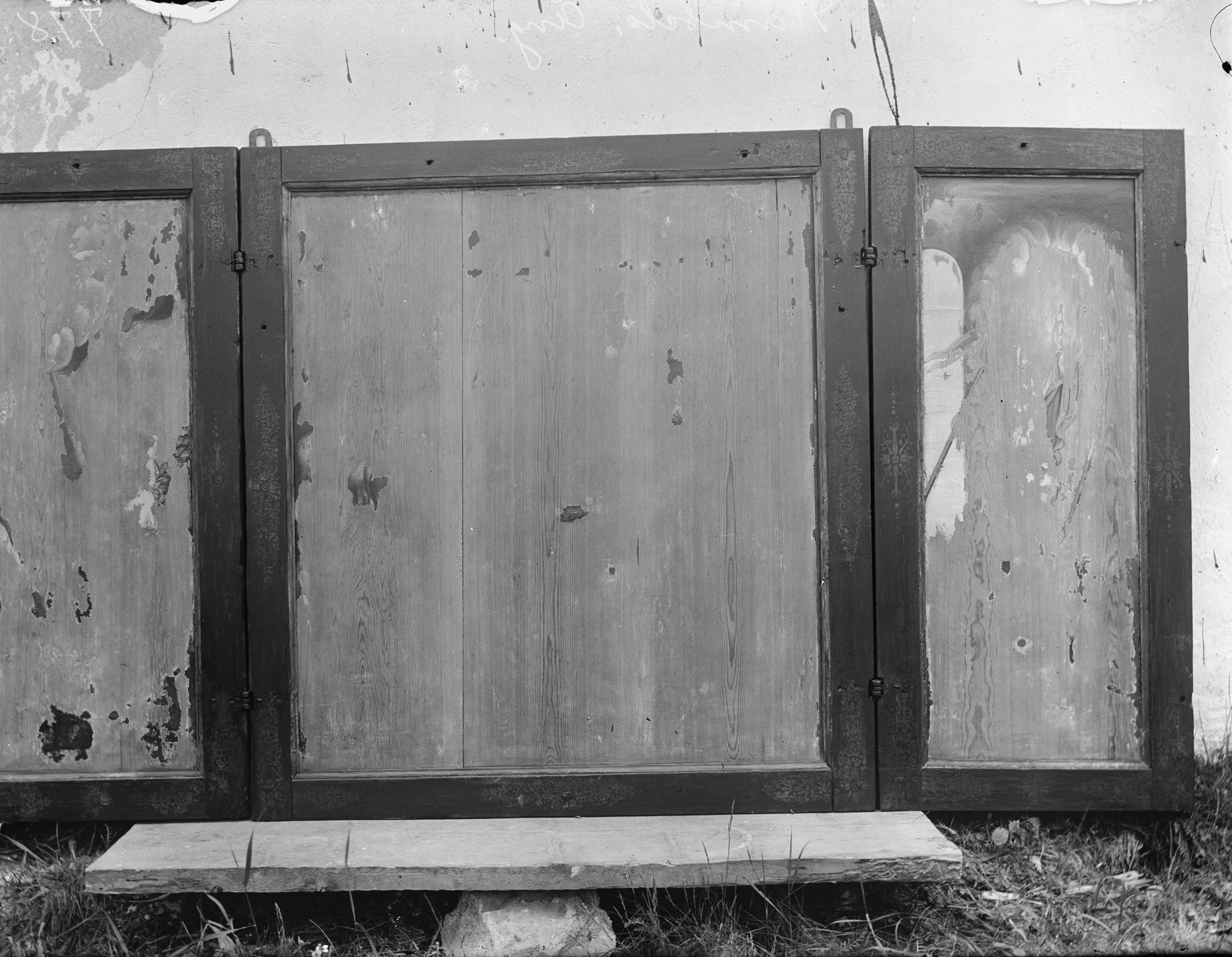 Beskrivning: Altartavla (?). Dörrar, insida, efter konservering. 1500-talet.