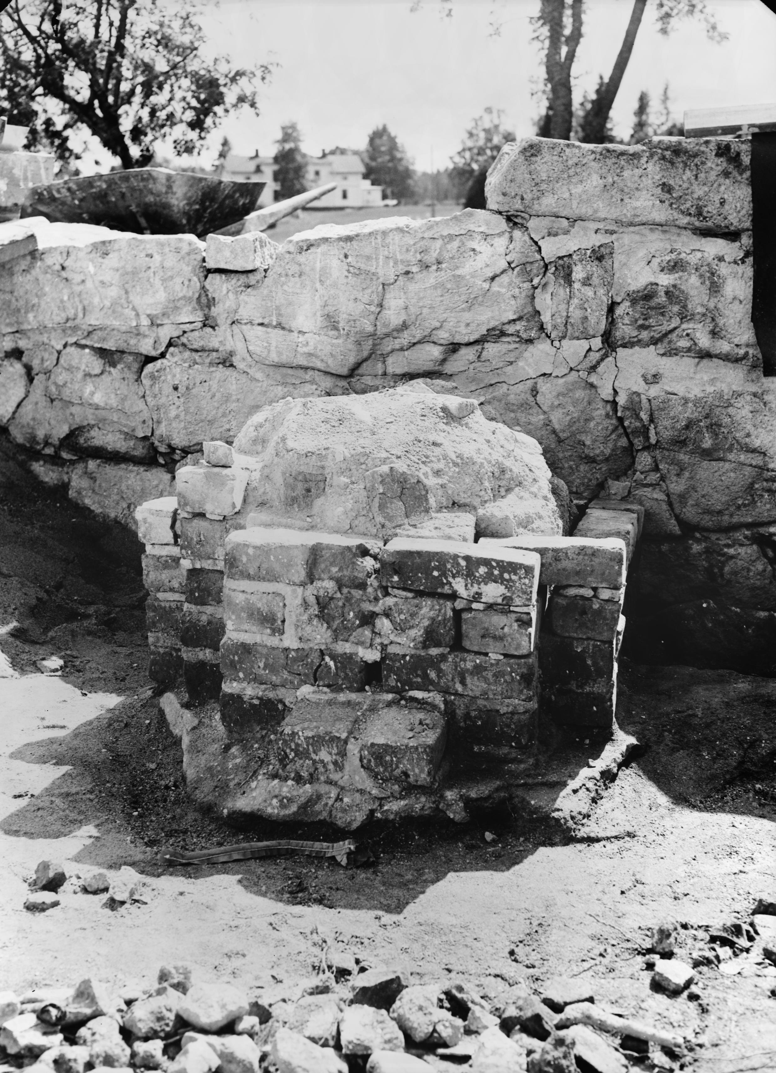 Beskrivning: Kyrkoruinen, valvpelare V. Under restaurering.