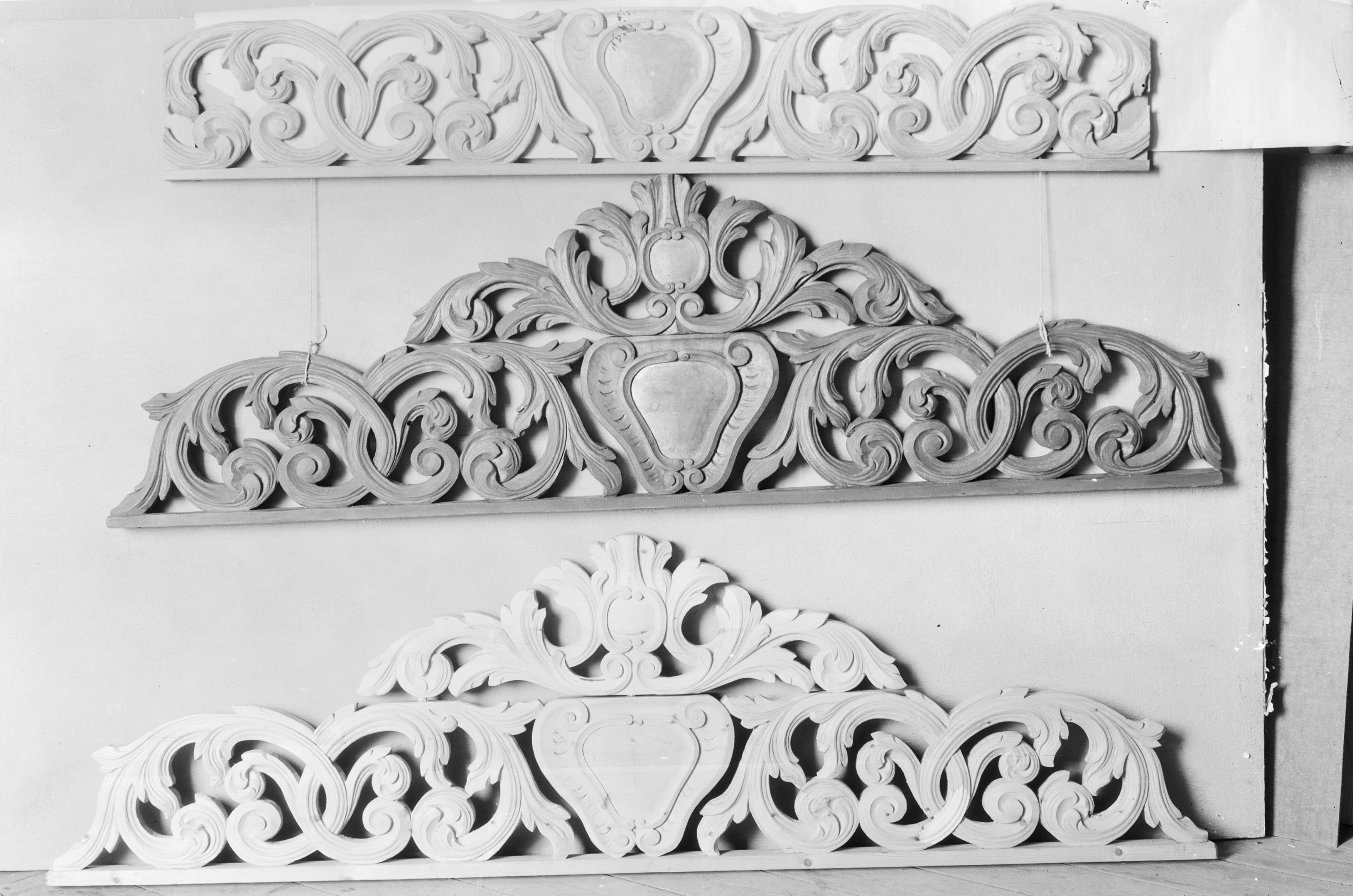 Beskrivning: Ornament i trä. Efter konservering (1932-1933).