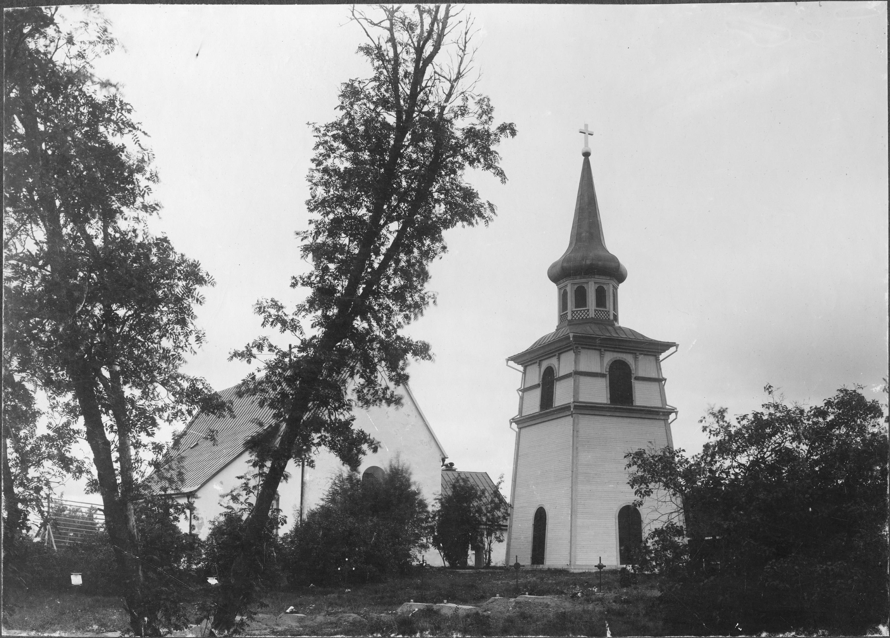 Beskrivning: Kyrkan från sydöst. Foto för tidningen Hemmet, årgång 1898.