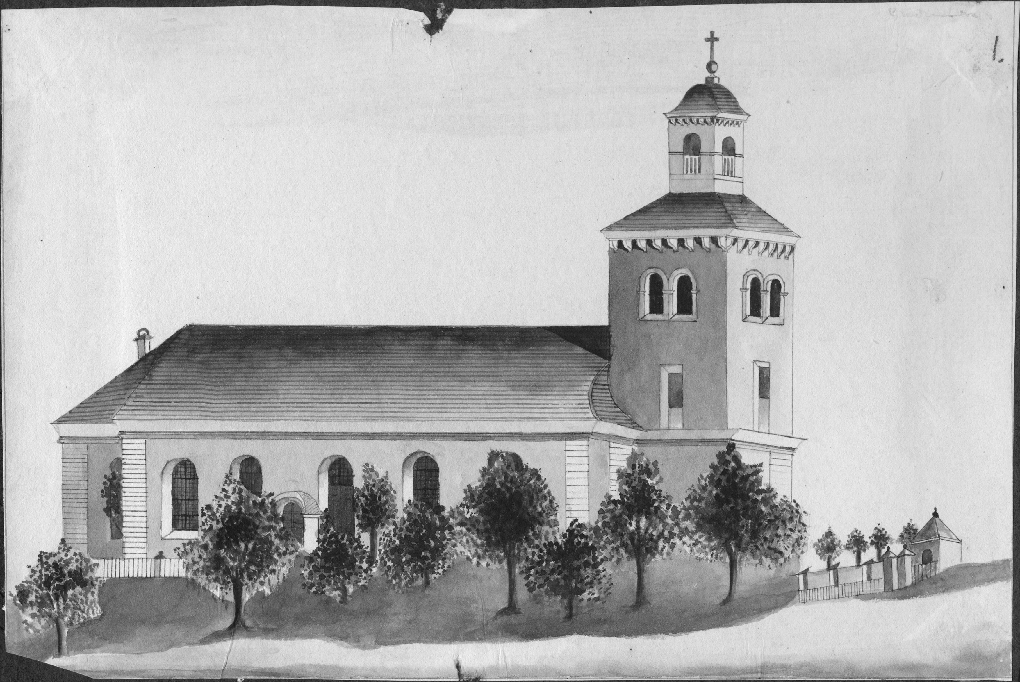 Beskrivning: Kyrkan från norr. Ur Ekdahls samling: Ångermanlands kyrkor 1828.
