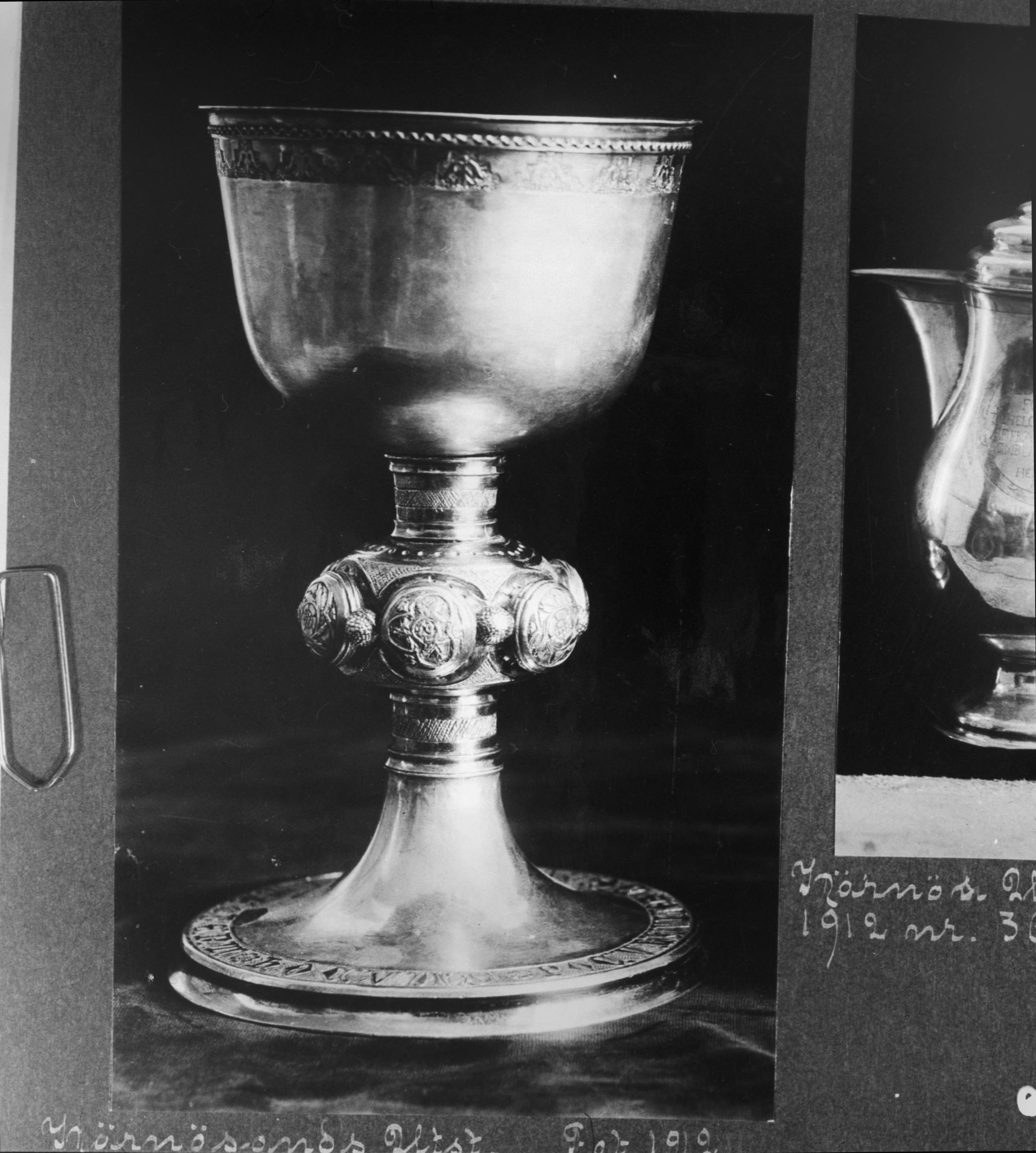Beskrivning: Beskrivning: Kalk av silver, delvis förgylld. 1300-tal.