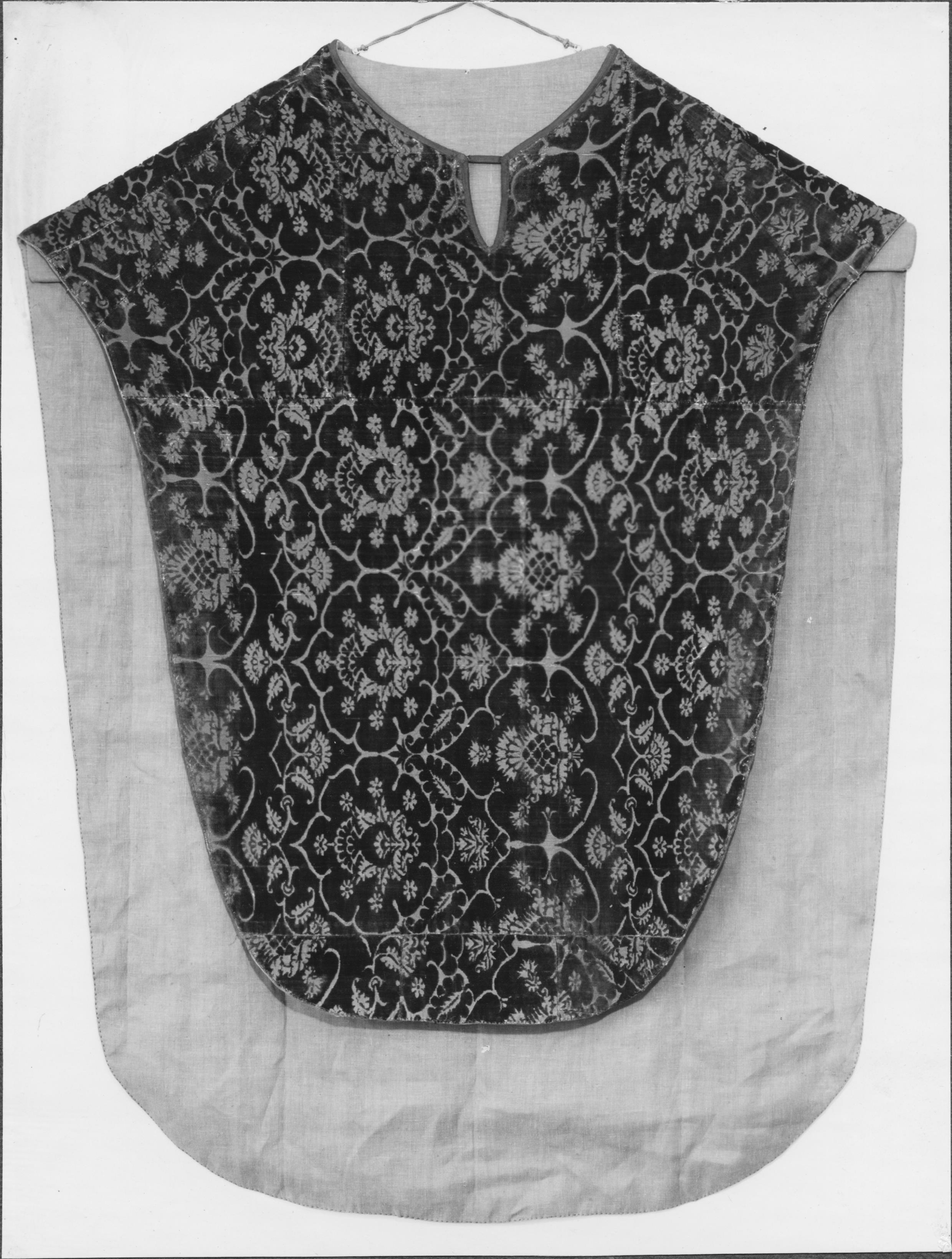 Beskrivning: Mässhake, framsida. Efter konservering.