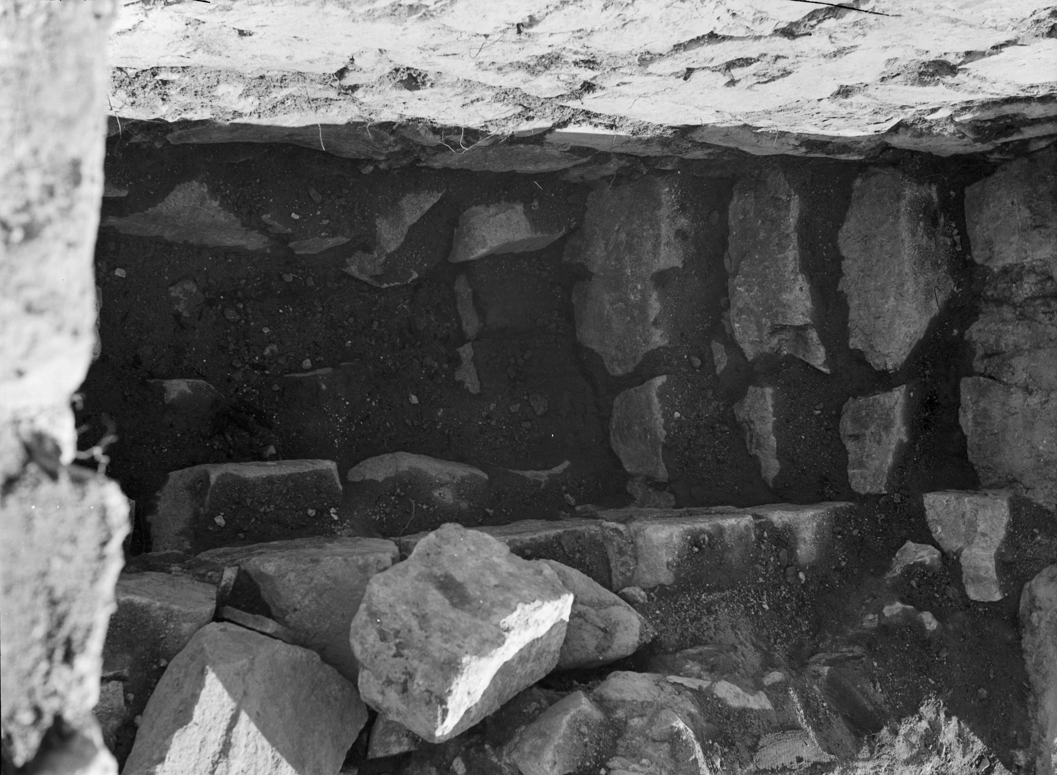 Beskrivning: Partiet mellan kormuren och restaerna av äldsta sakristians östmur.