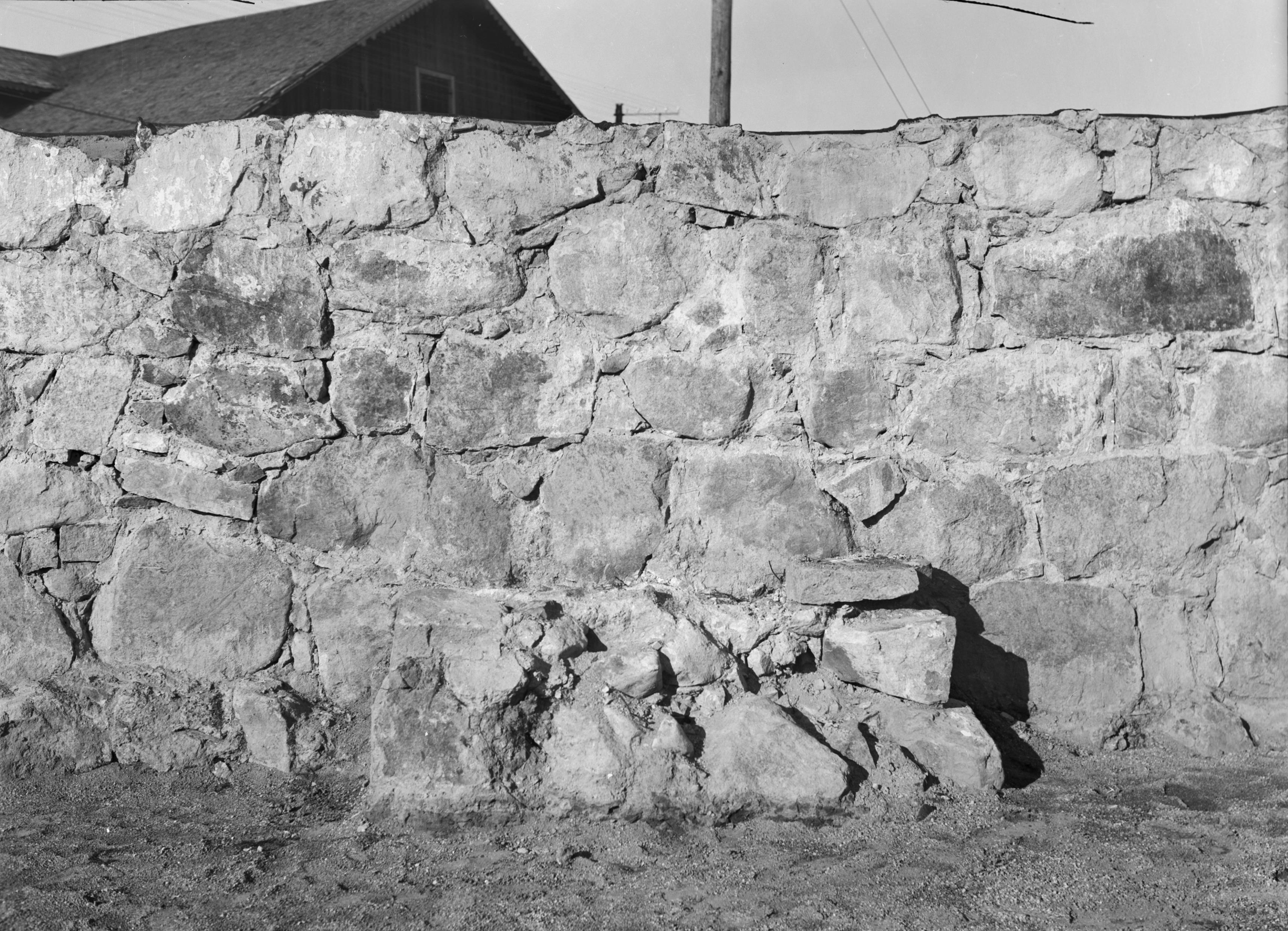 Beskrivning: Rester av altarbordet på norra muren.