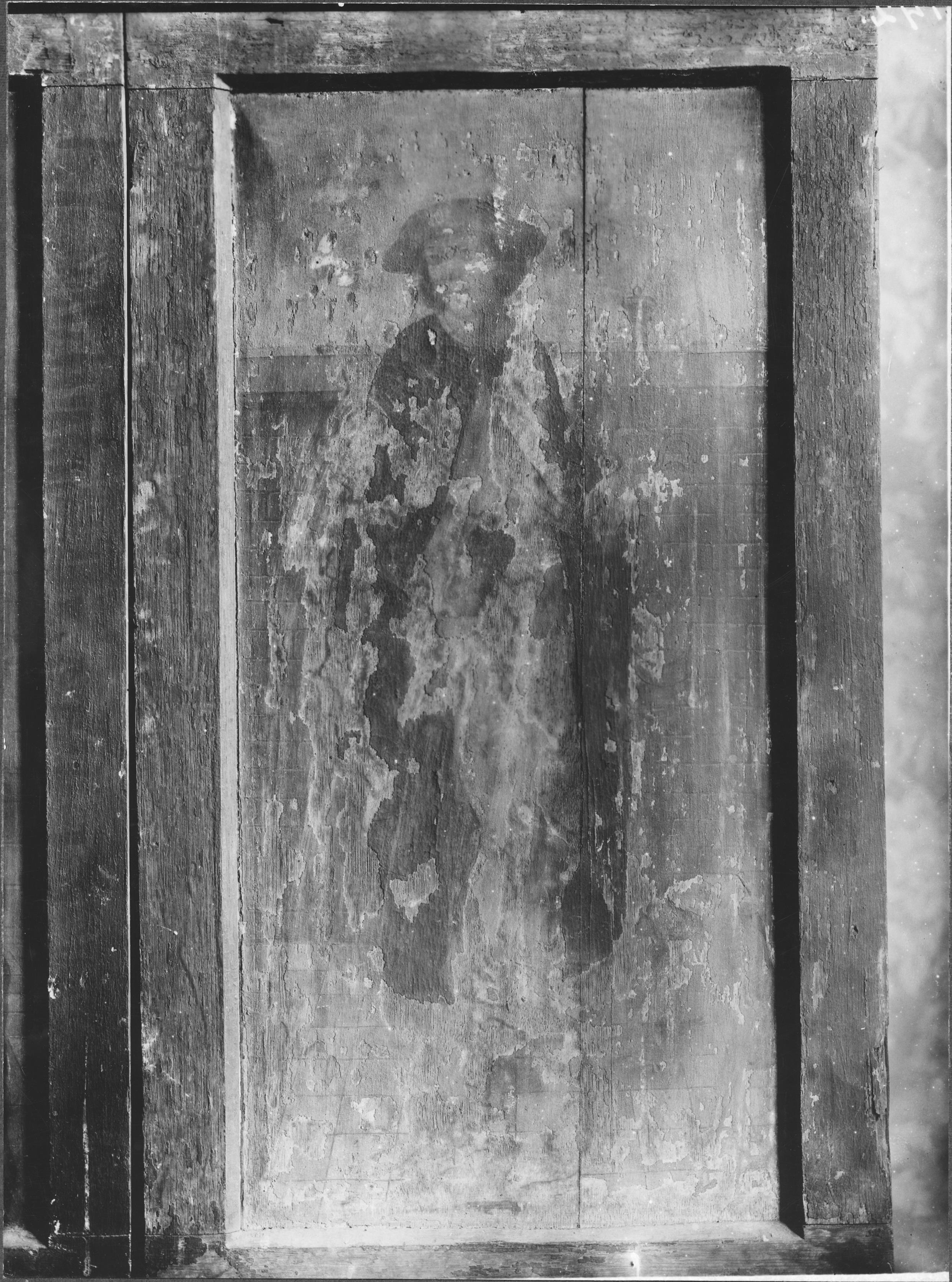 Beskrivning: Altarskåp, nederländskt arbete. 1500-talets början. De målande framställningarna på dörrarna samt de skulpturala i korpus bilda en sammanhängande berättelse ur Kristi liv. Detalj av målad dörr.