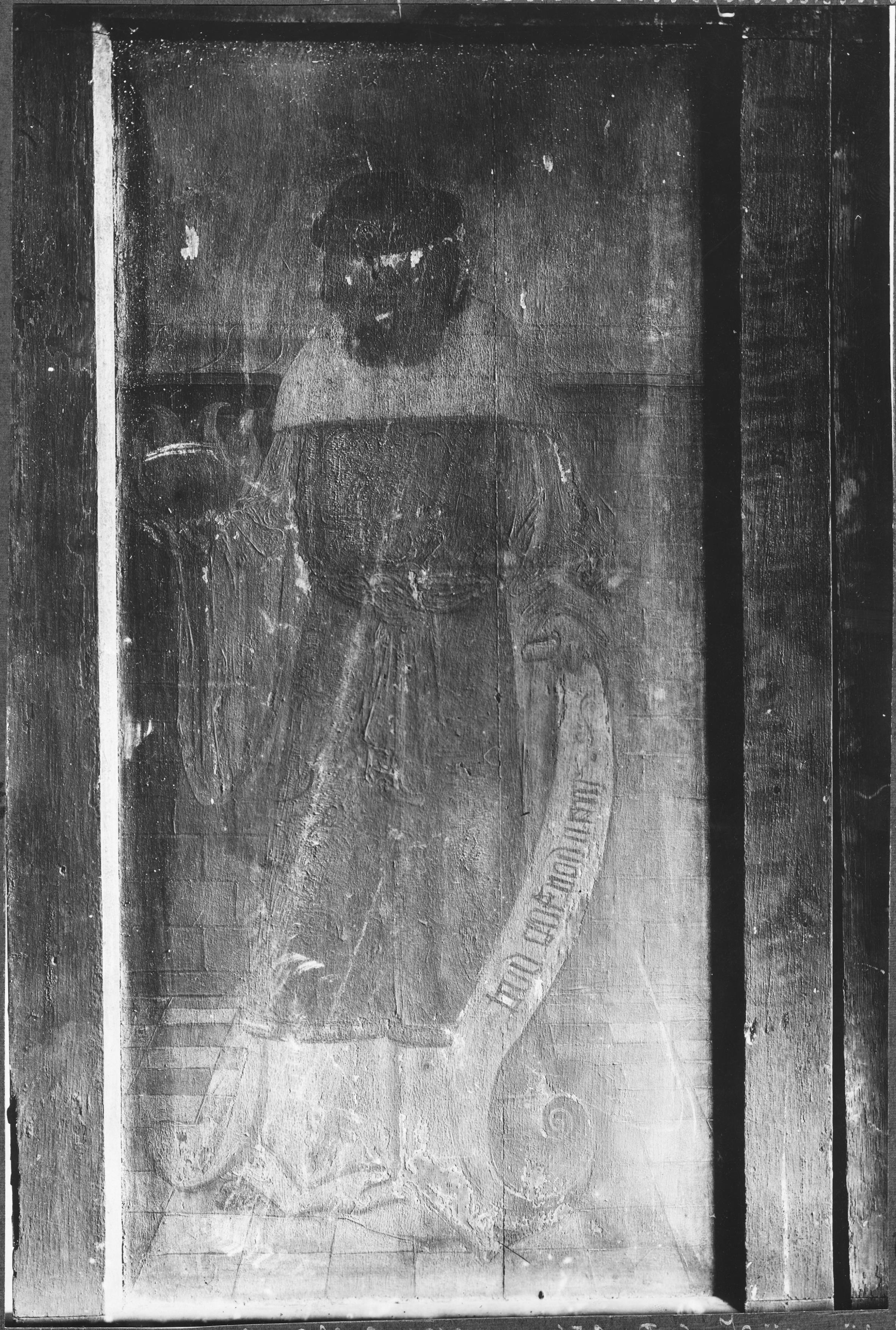 Beskrivning: Beskrivning: Altarskåp, nederländskt arbete. 1500-talets början. De målande framställningarna på dörrarna samt de skulpturala i korpus bilda en sammanhängande berättelse ur Kristi liv. Detalj av målad dörr.