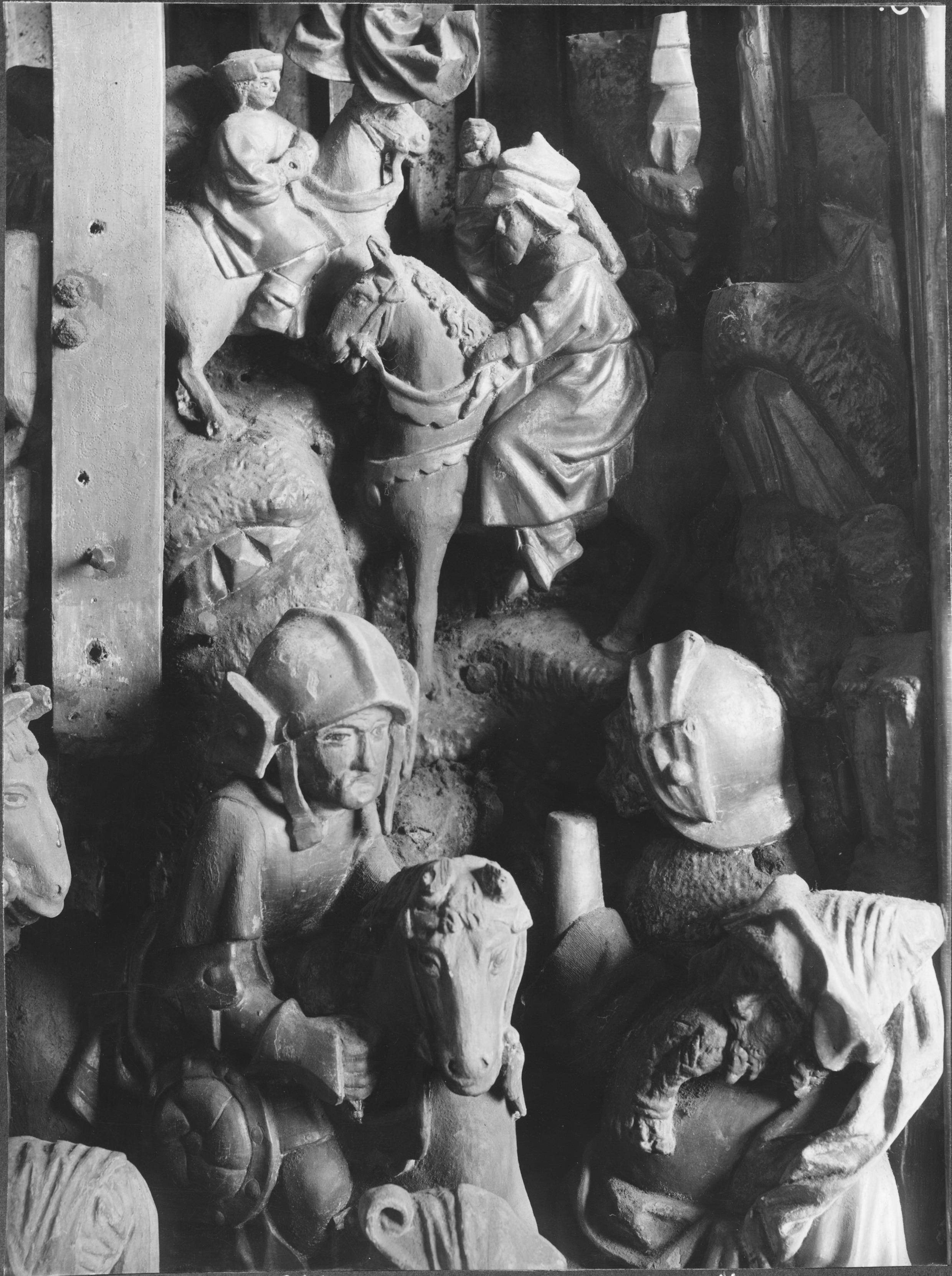 Beskrivning: Beskrivning: Altarskåp, nederländskt arbete. 1500-talets början. De målande framställningarna på dörrarna samt de skulpturala i korpus bilda en sammanhängande berättelse ur Kristi liv. Detalj.