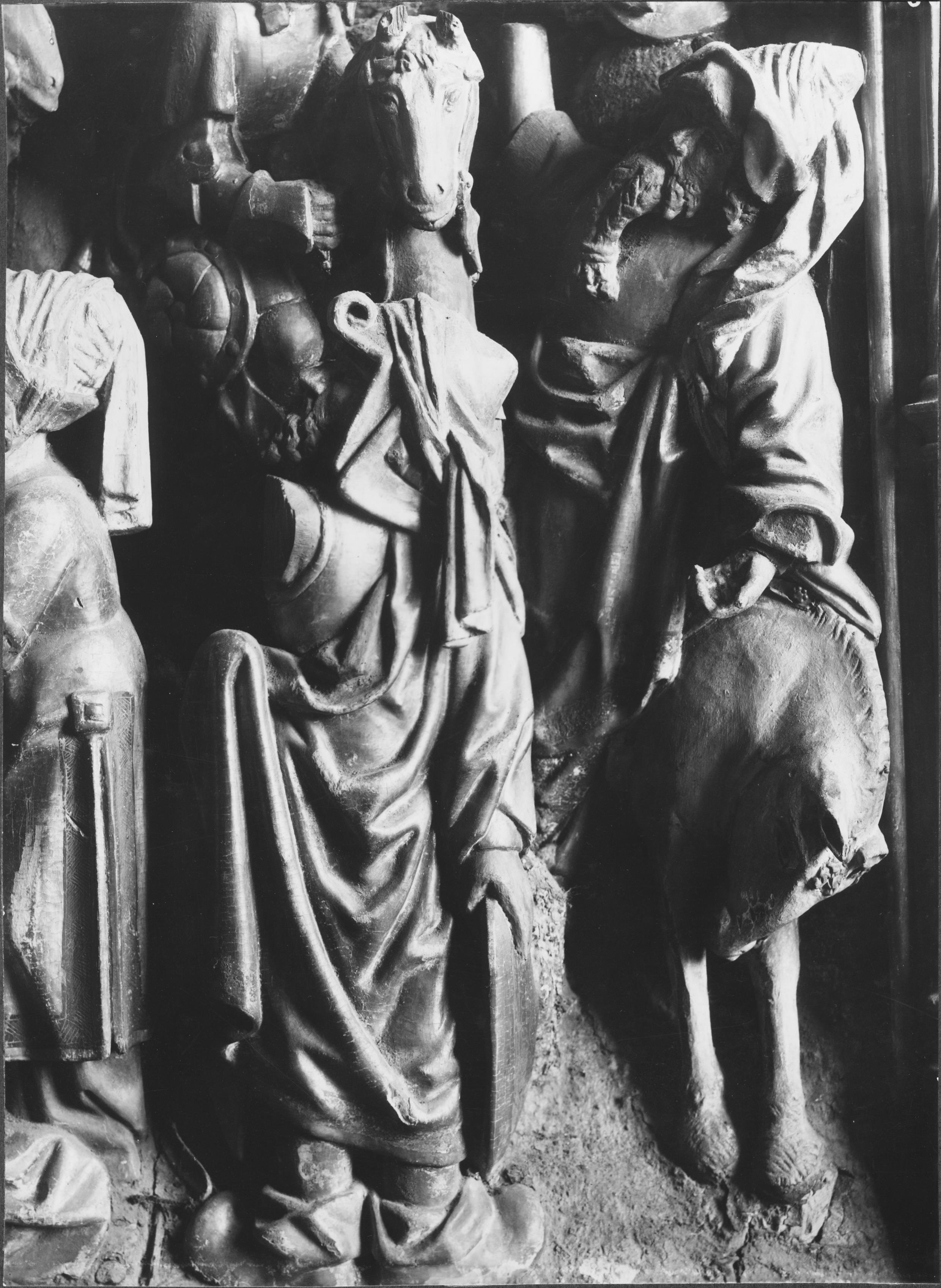 Beskrivning: Beskrivning: Altarskåp, nederländskt arbete. 1500-talets början. De målande framställningarna på dörrarna samt de skulpturala i korpus bilda en sammanhängande berättelse ur Kristi liv. Detalj.