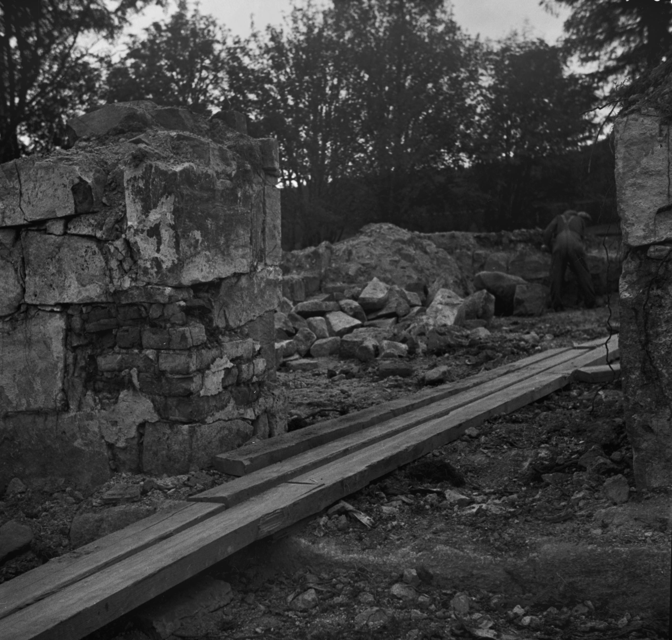 Beskrivning: Kyrkoruinen. Ingången från vapenhuset till långhuset.