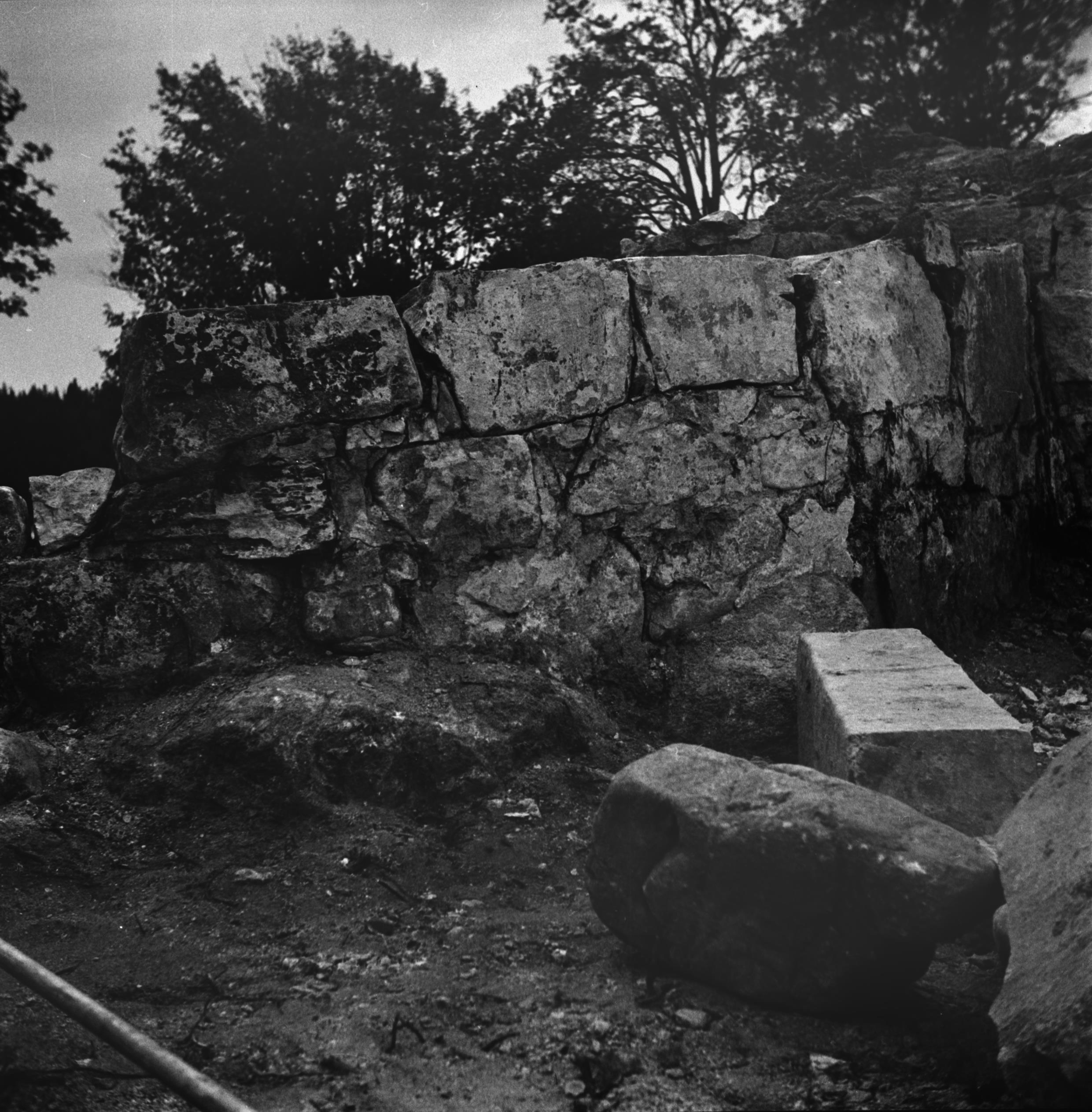Beskrivning: Kyrkoruinen. Den runda byggnaden från norr.