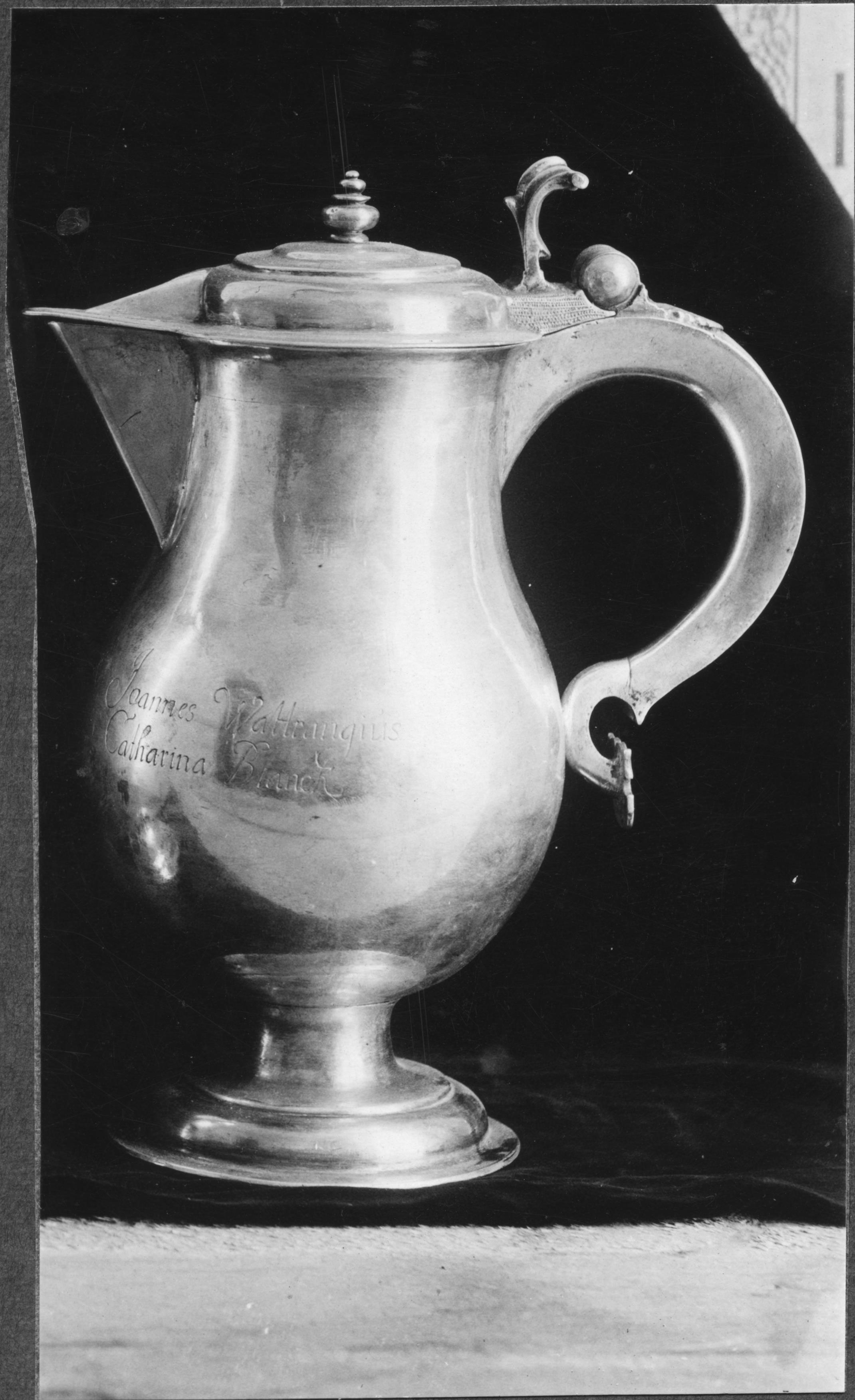 Beskrivning: Vinkanna av silver, delvis förgylld. 1700-tal.