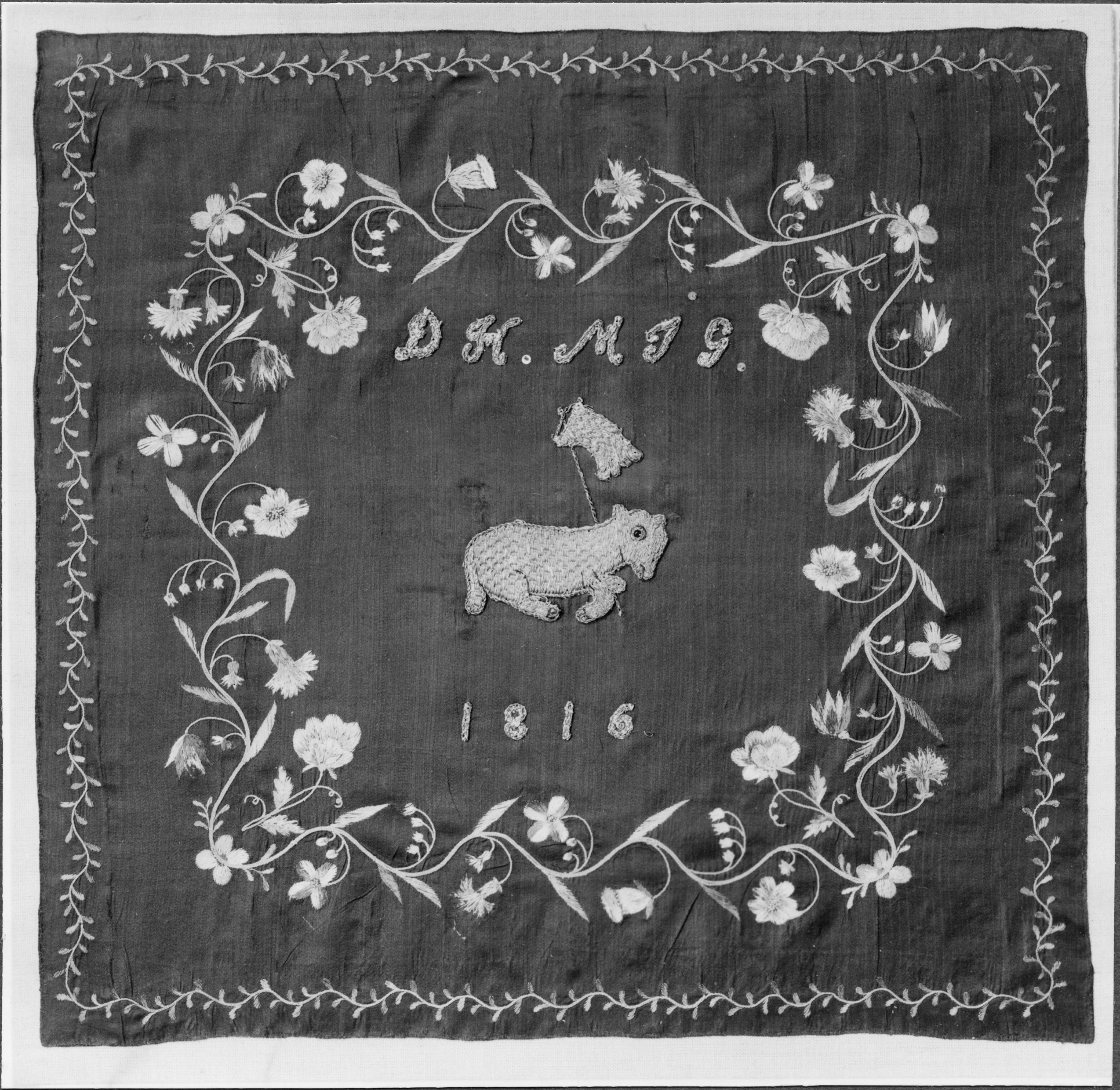 Beskrivning: Kalkduk av svart siden. Efter konservering.