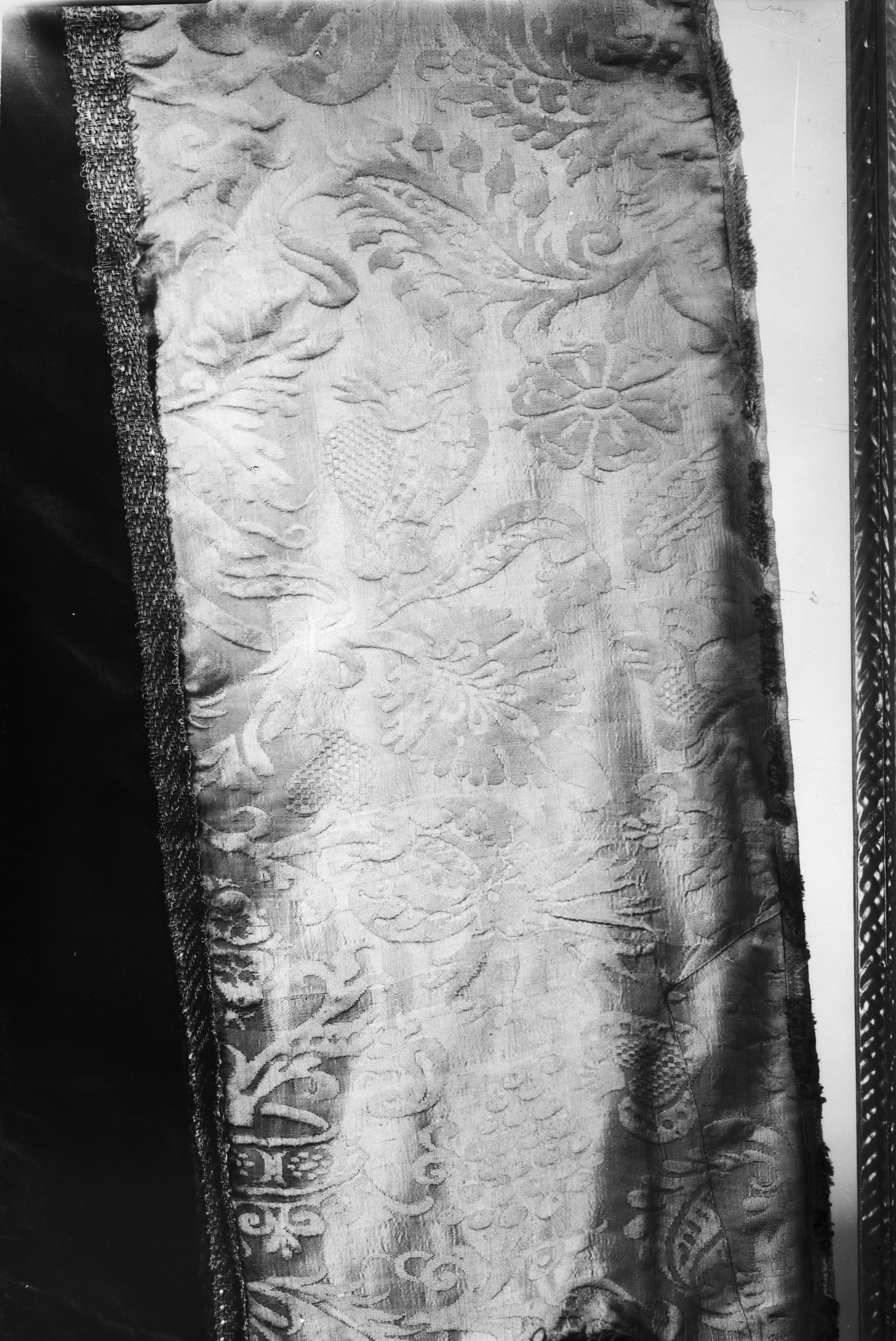 Beskrivning: Mässhake av blått siden, 1400-tal. Detalj.