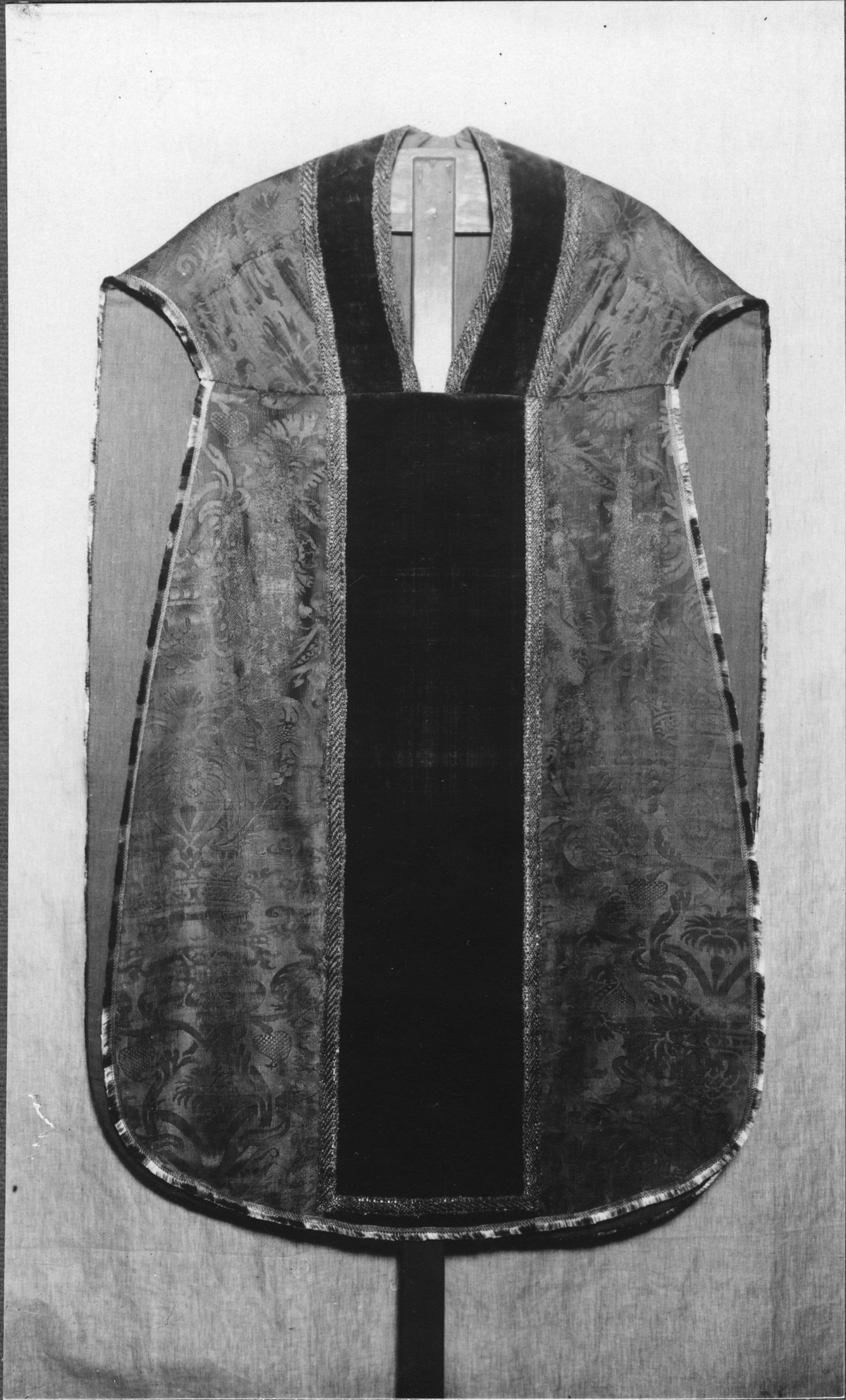 Beskrivning: Mässhake av blått siden, 1400-tal. Framsida. Efter renovering.