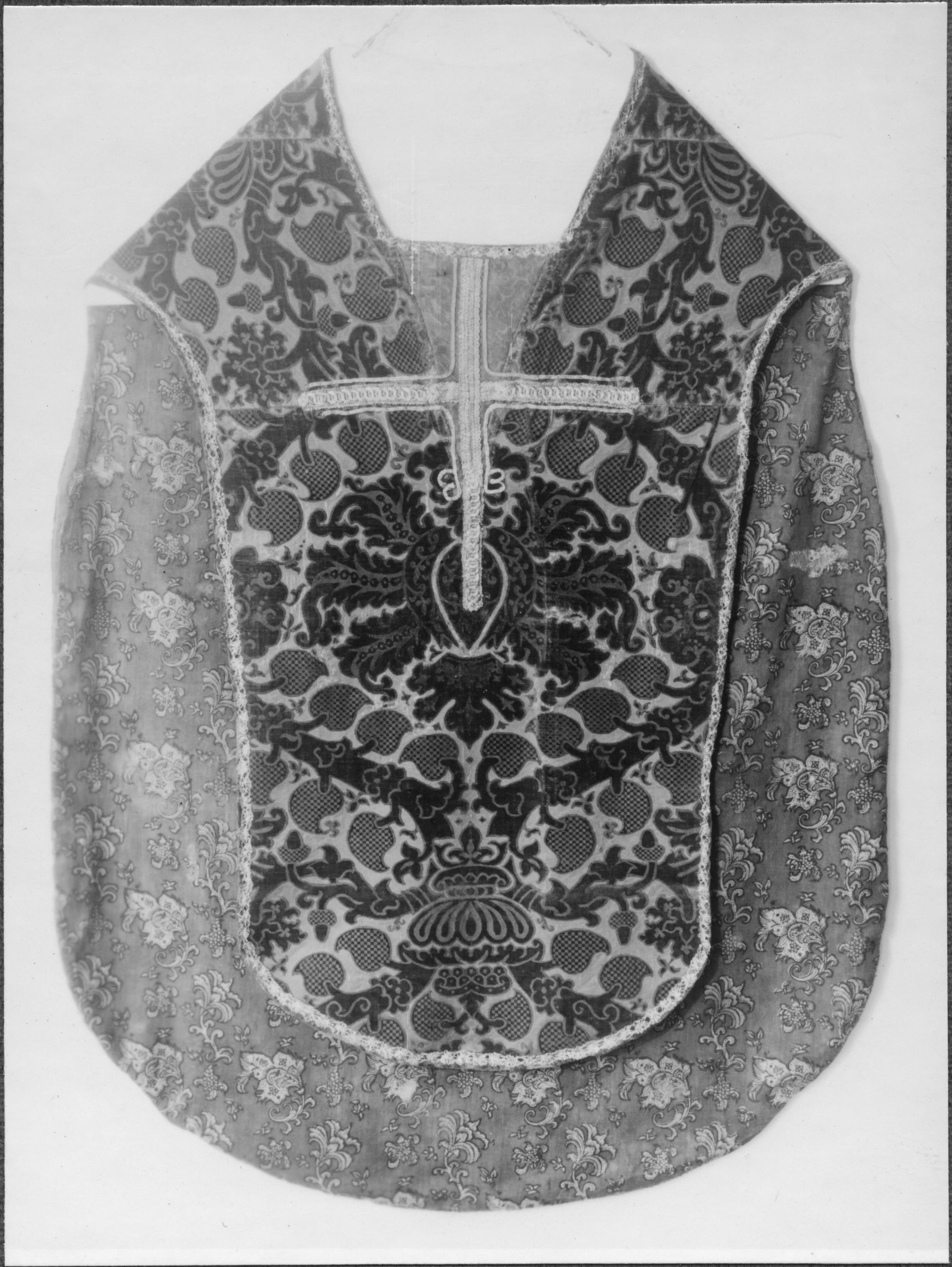 Beskrivning: Mässhake av röd sammet, framsida. Pietas nr 2760/1949.