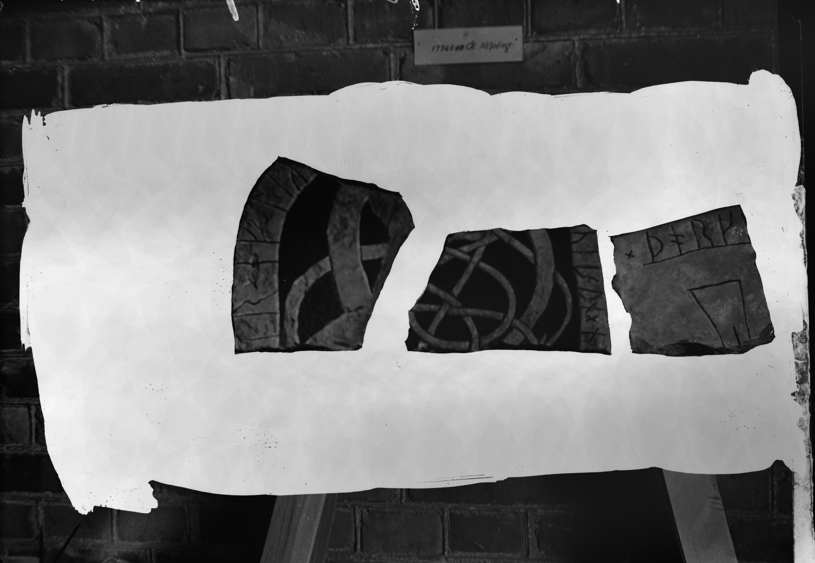 Beskrivning: Tre fragment av runstenar. SHM 15535.