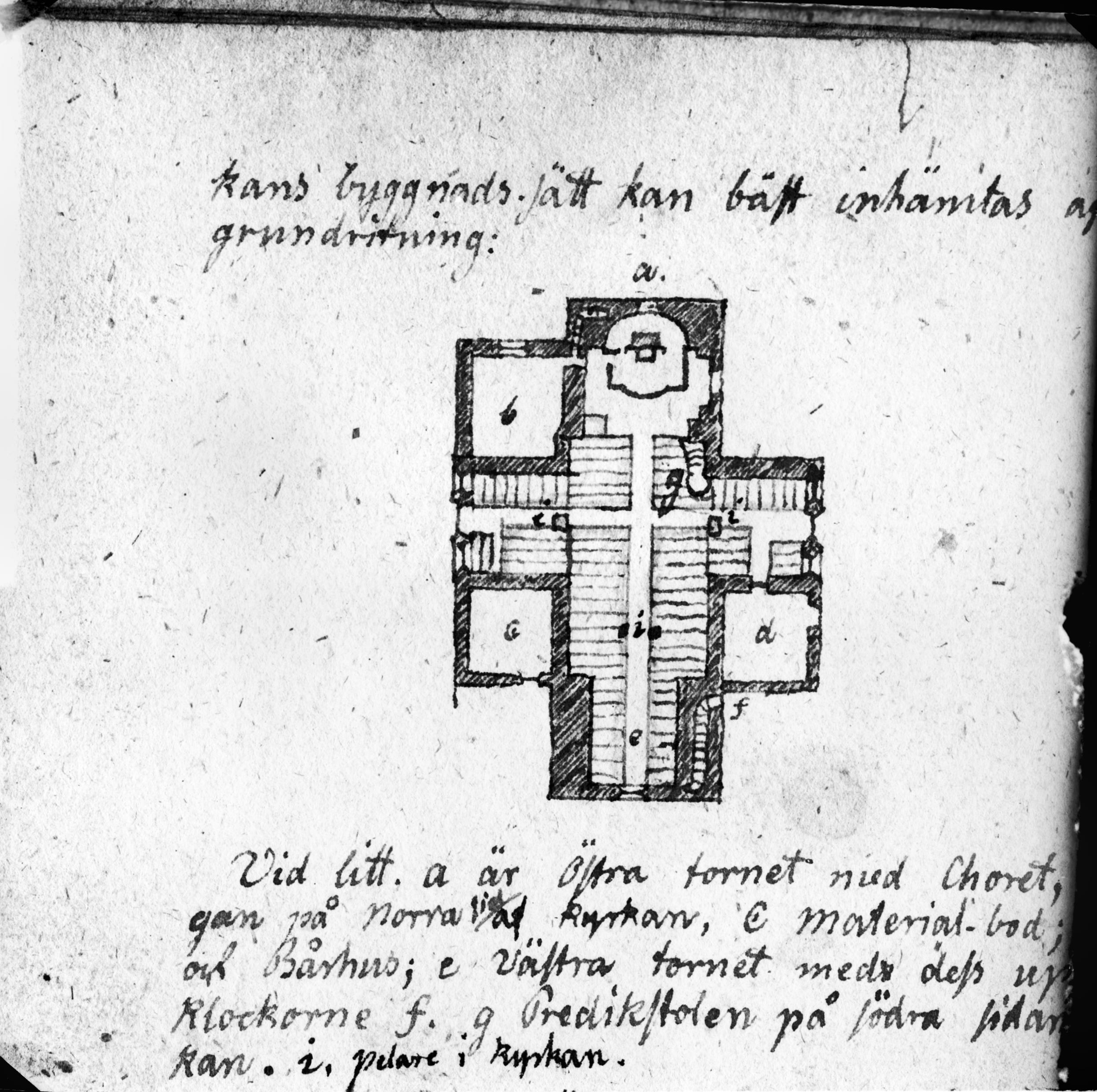 Beskrivning: Planritning av kyrkan. Ur Åhstrand-Löfgren. ATA.