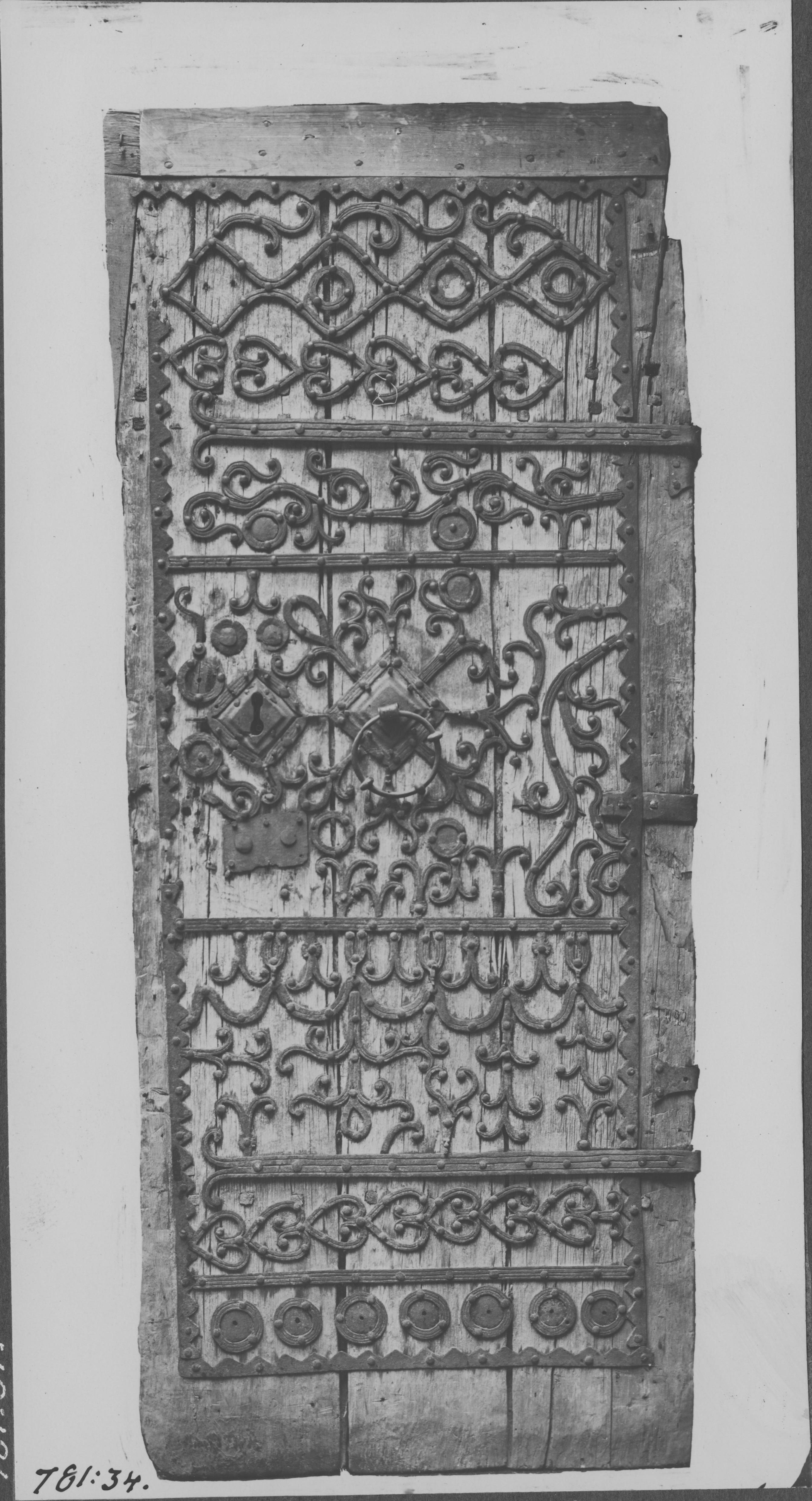Beskrivning: Dörr med järnbeslag. SHM inv nr 7890.
