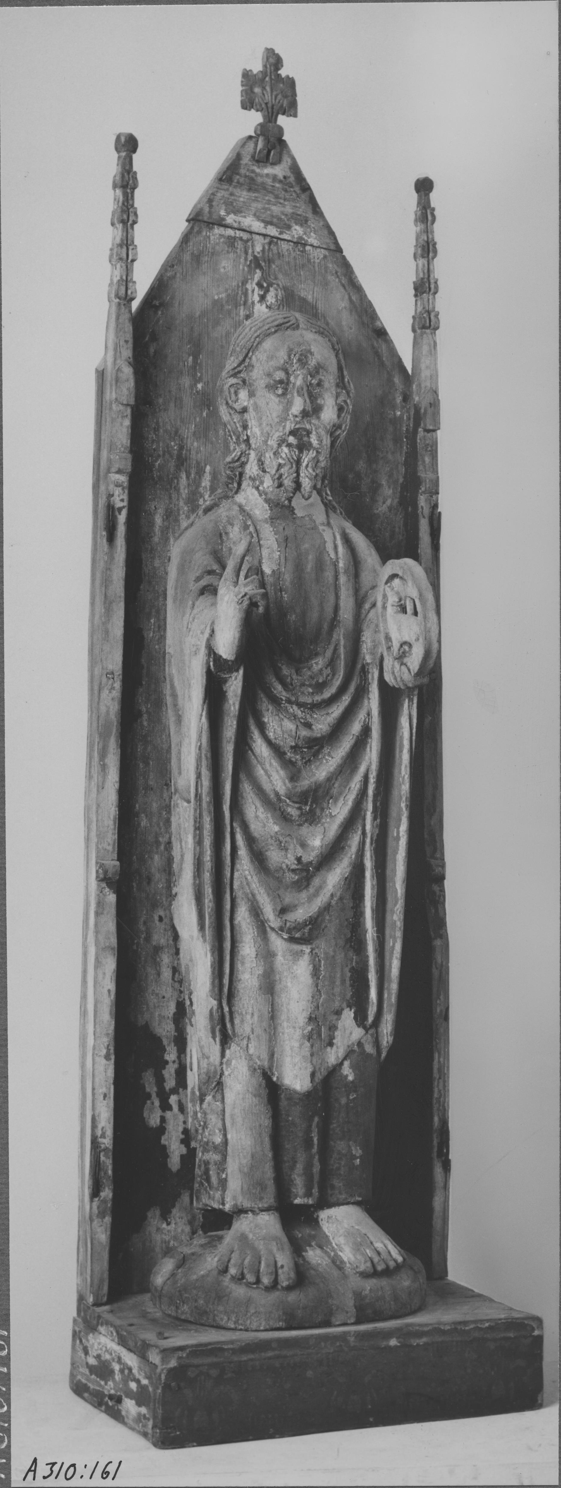 Beskrivning: Träskulptur föreställande Johannes Döparen.