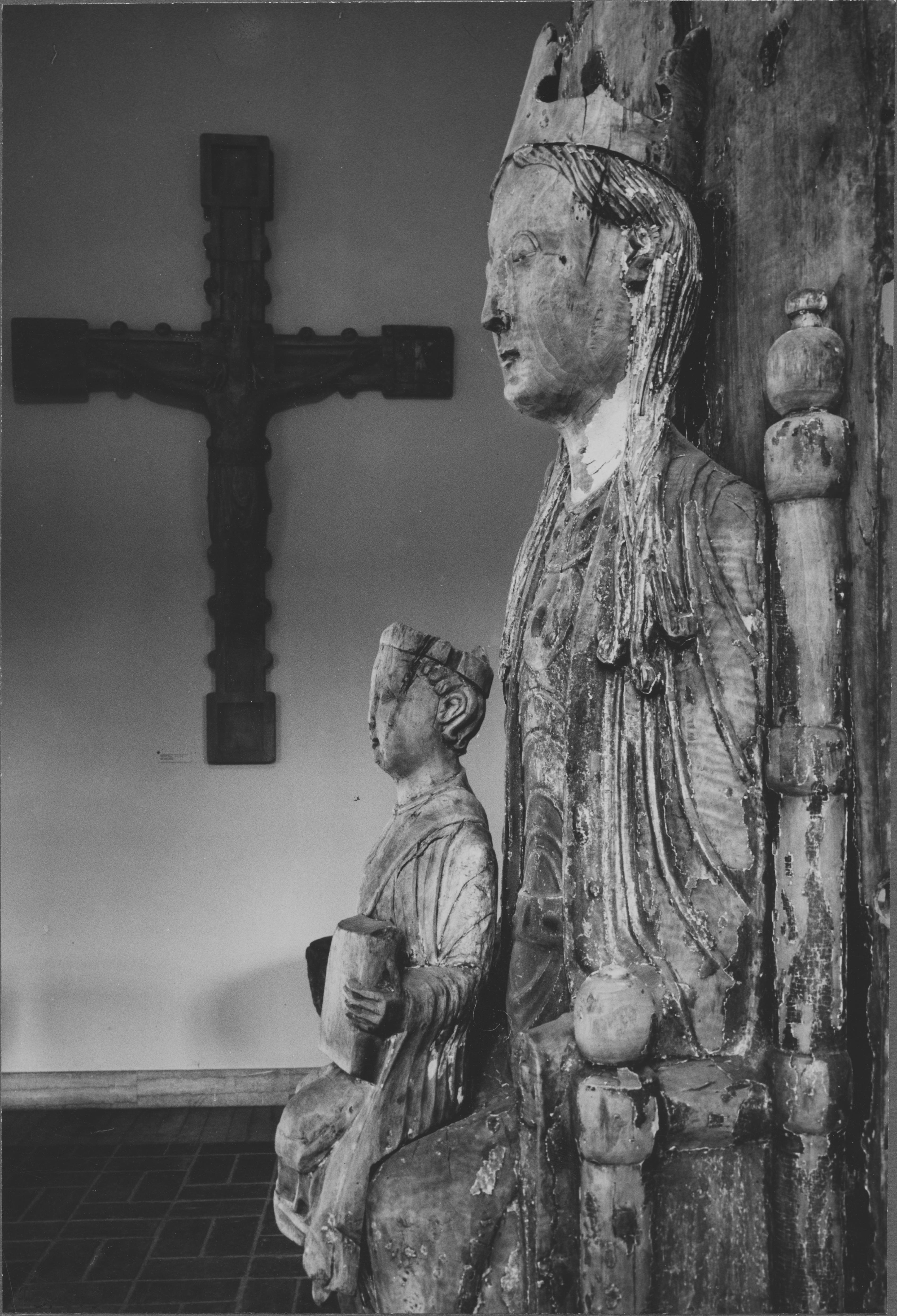 Beskrivning: Beskrivning: Träskulptur föreställande Madonnan och barnet, detalj.