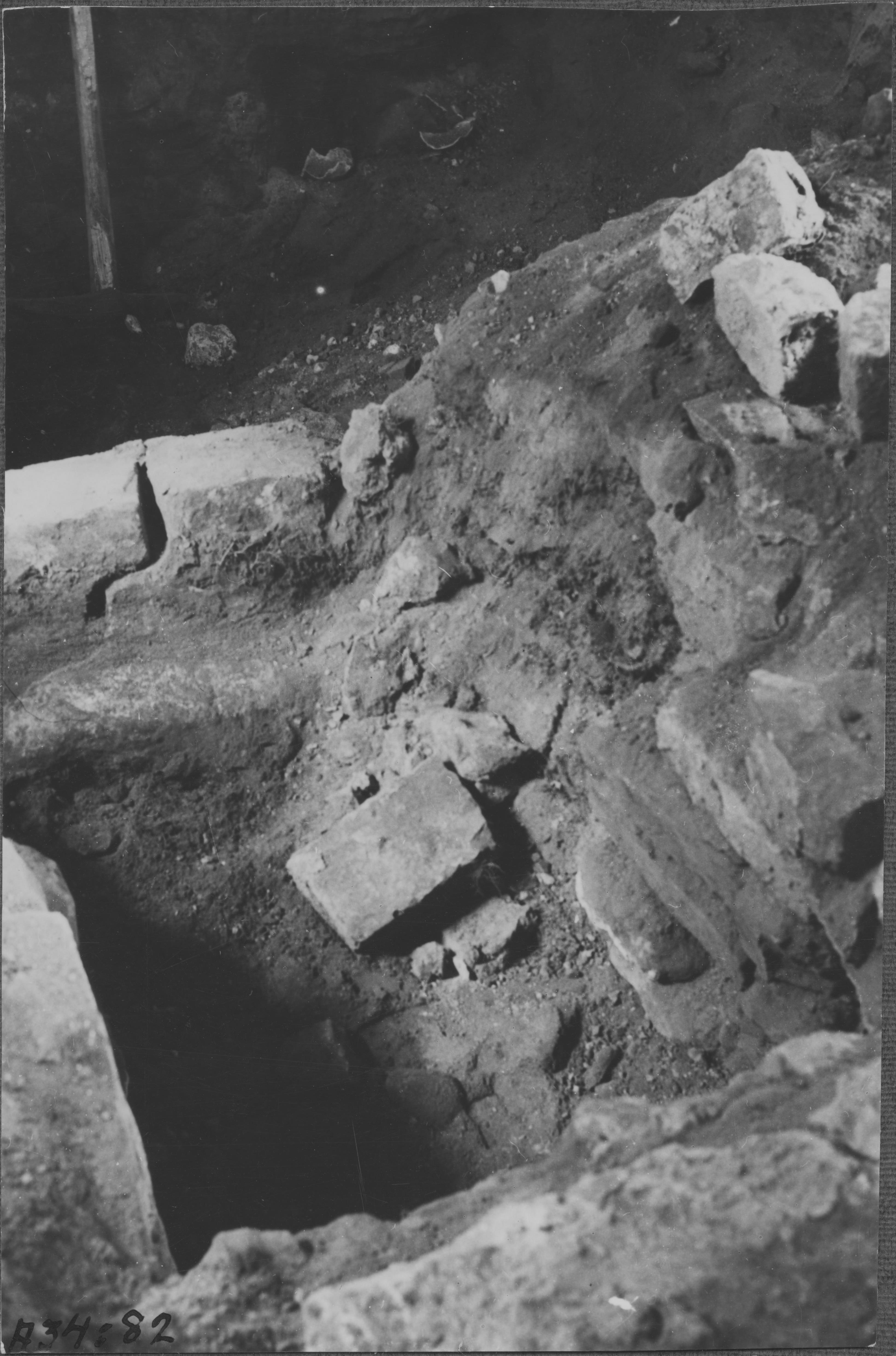 Beskrivning: Utgrävning i kyrkan. Nedgång till vinkällaren, från väster.