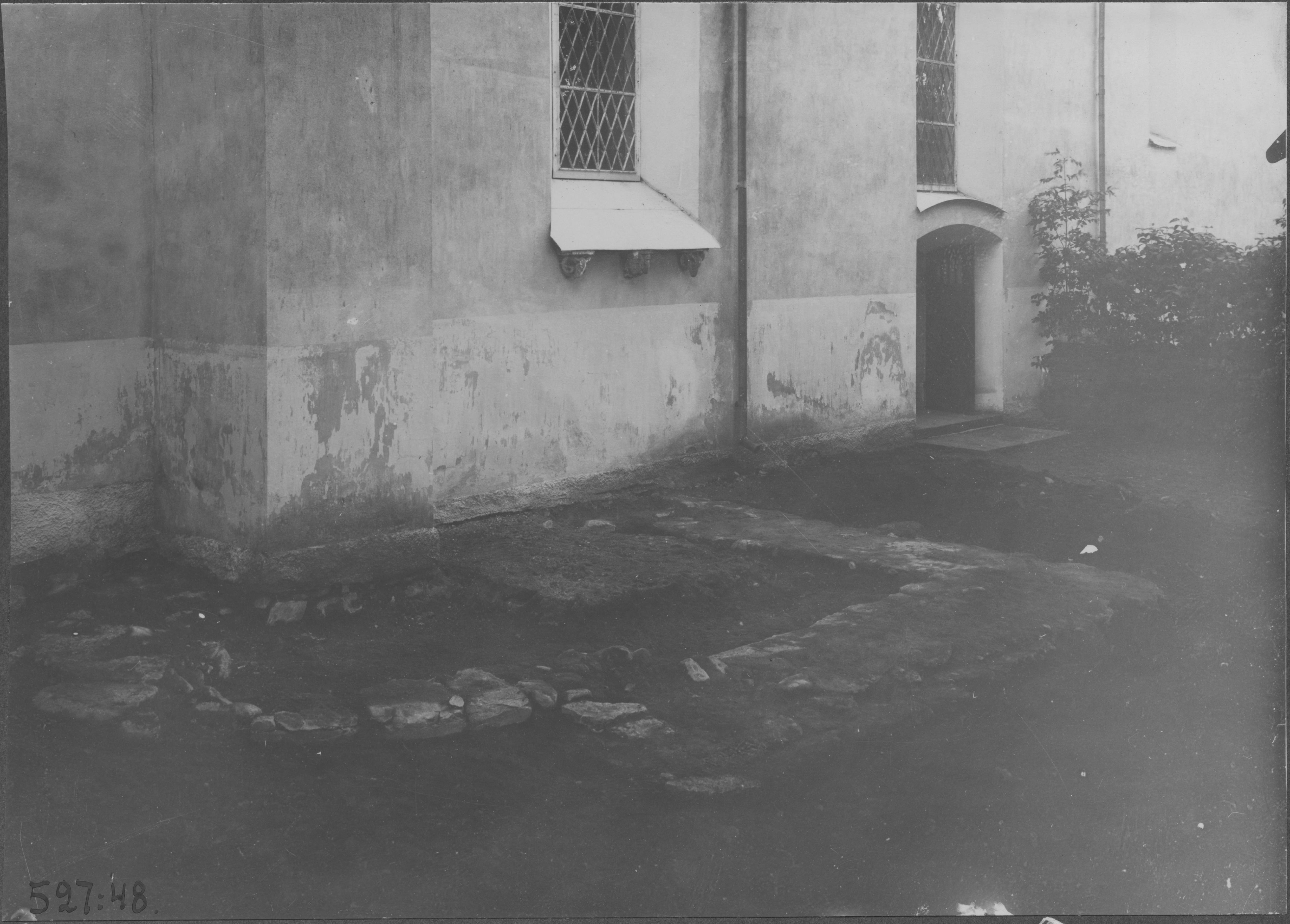 Beskrivning: Utgrävningar på norra sidan av kyrkan.