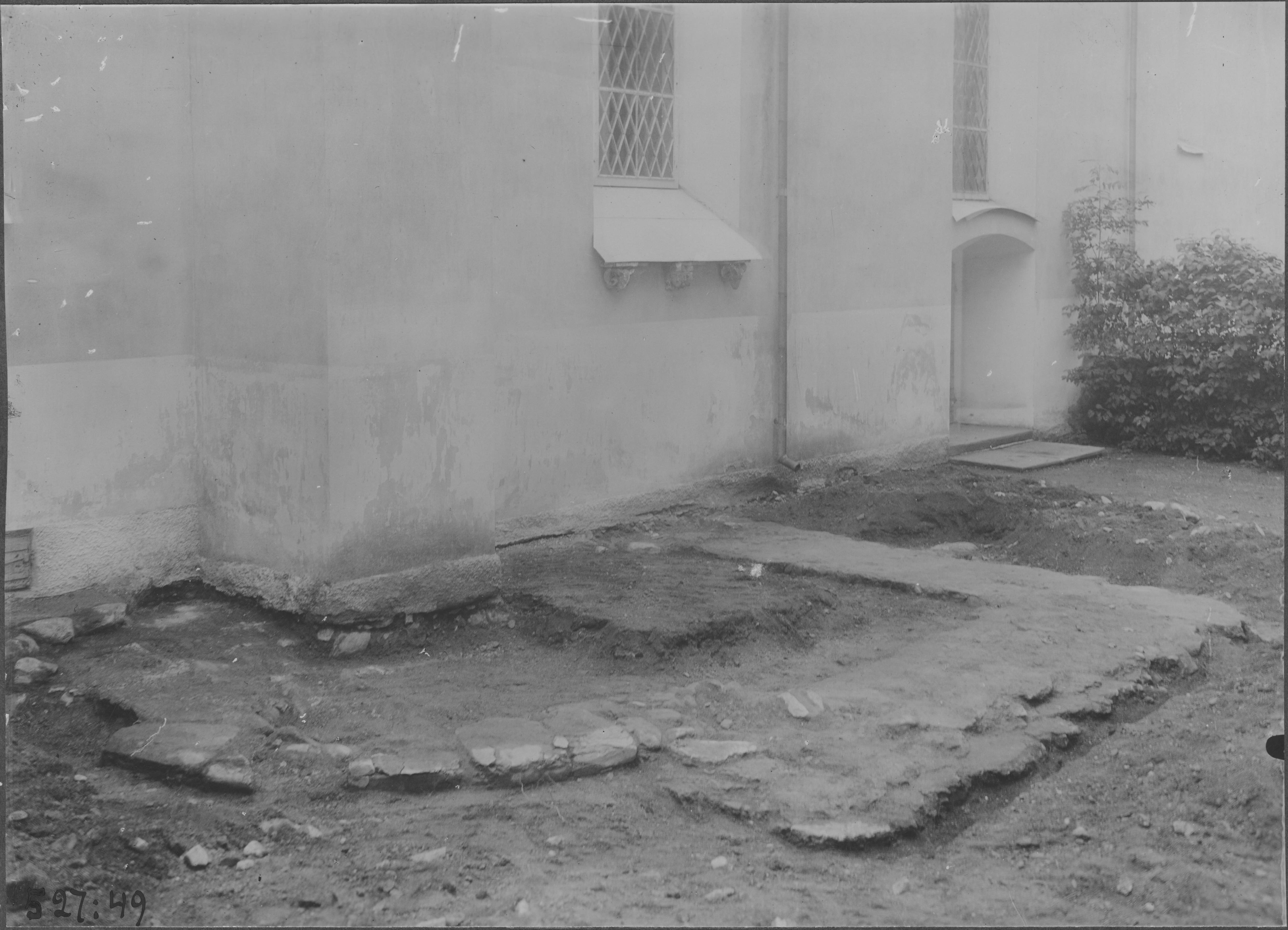 Beskrivning: Utgrävningar på norra sidan av kyrkan.