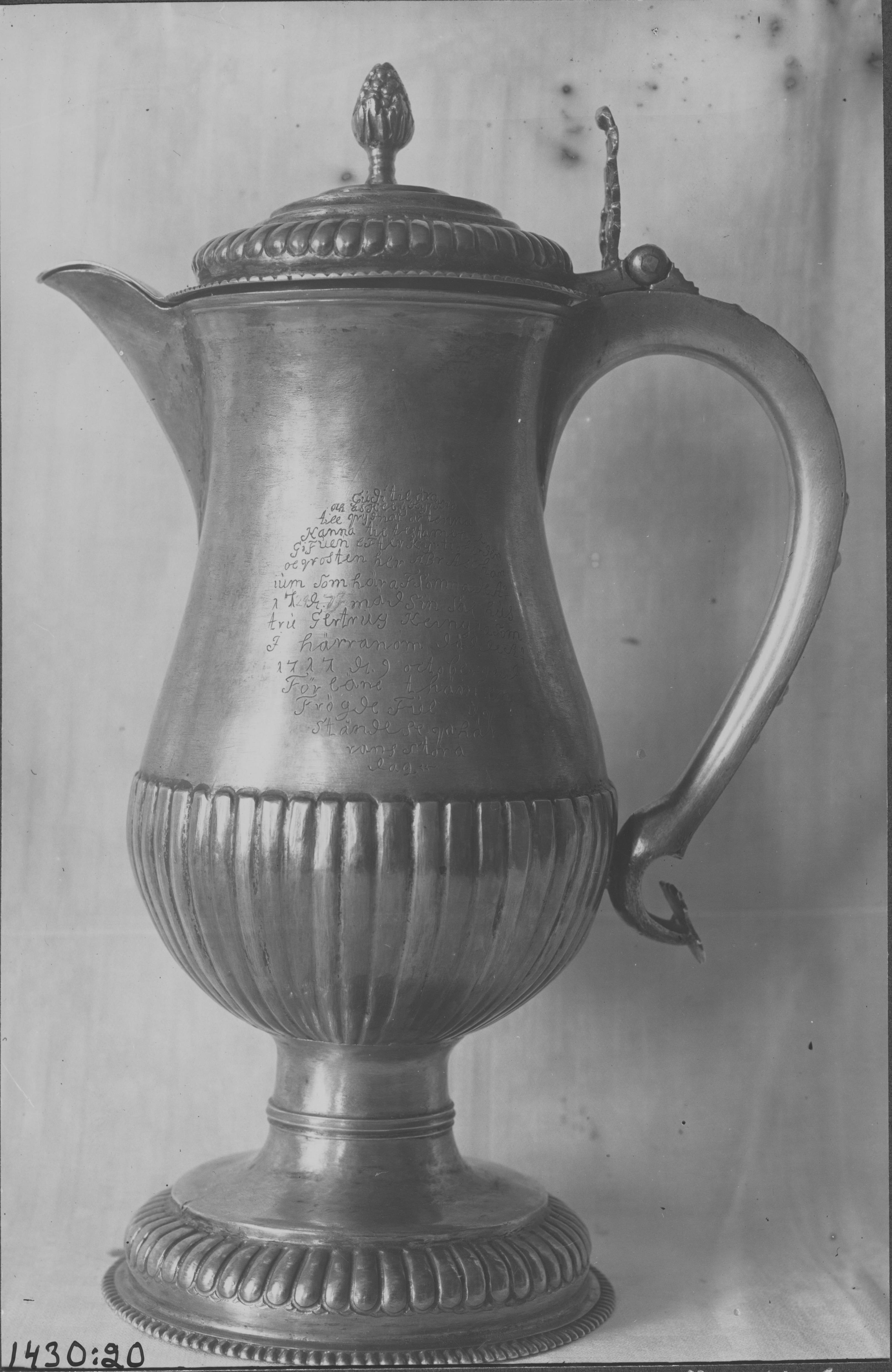 Beskrivning: Vinkanna av silver.