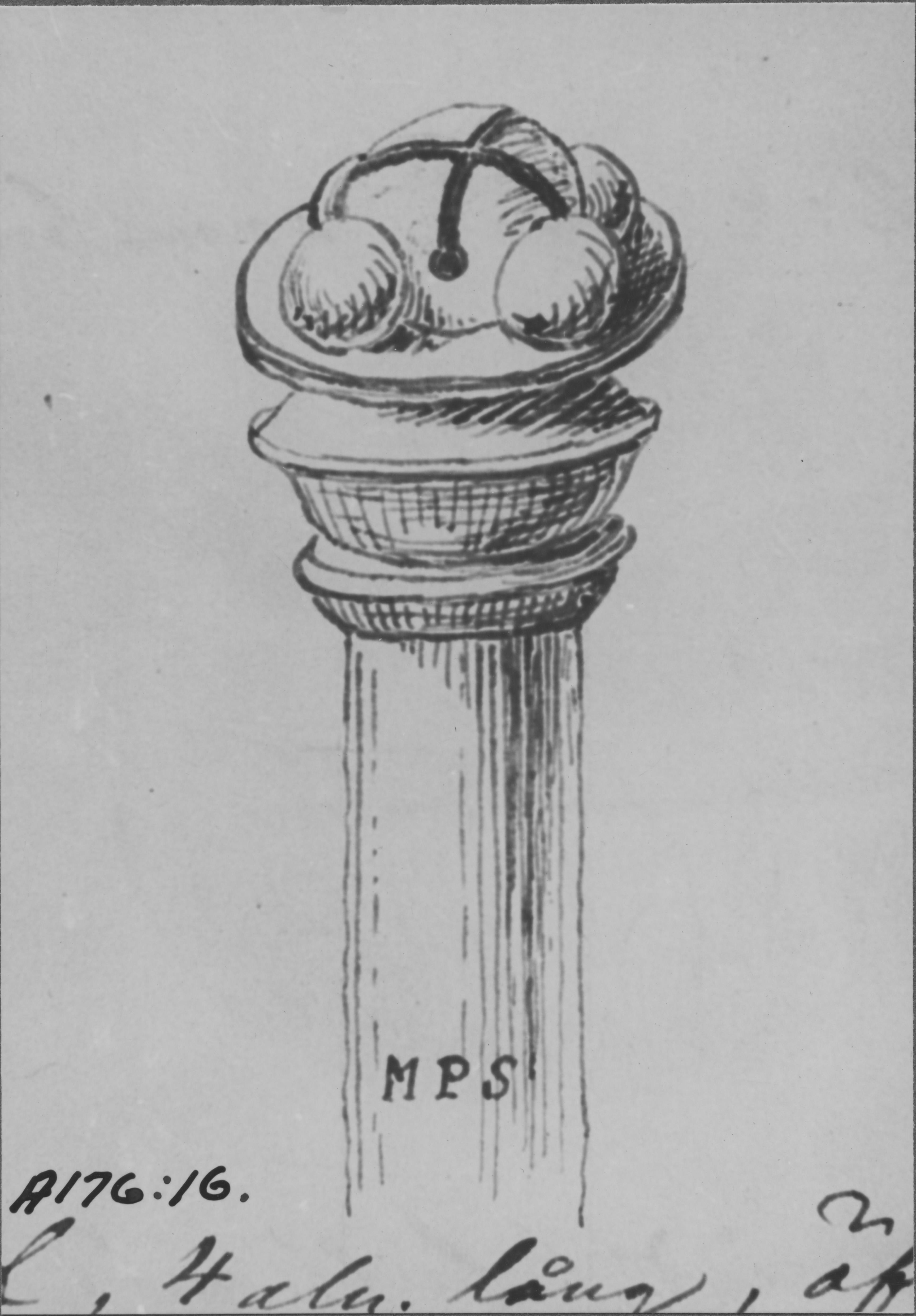 Beskrivning: Kyrkvaktarstav. Teckning ur P.A. Säve 1862.