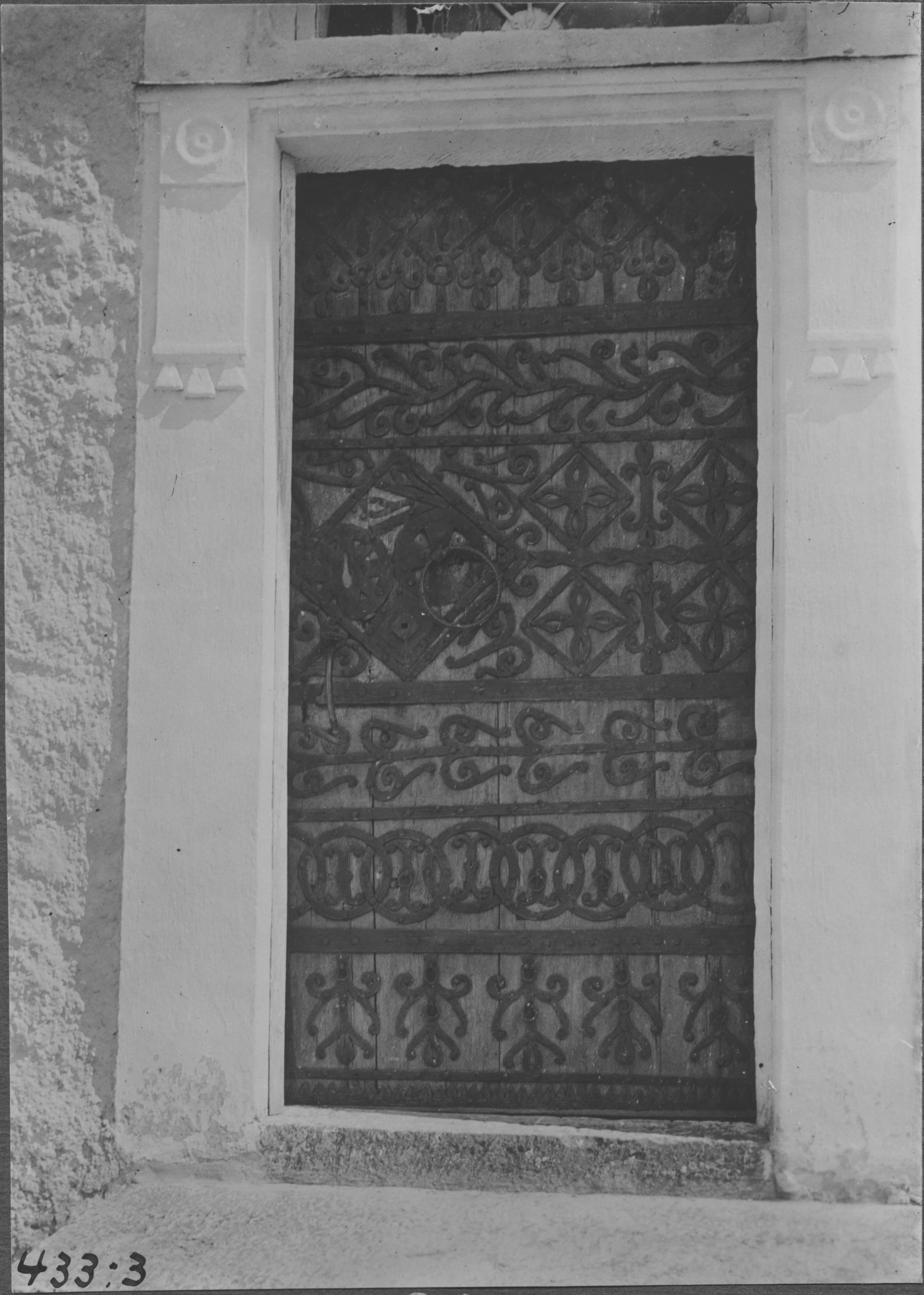 Beskrivning: Järnbeslagen port i Bielkes gravkor.