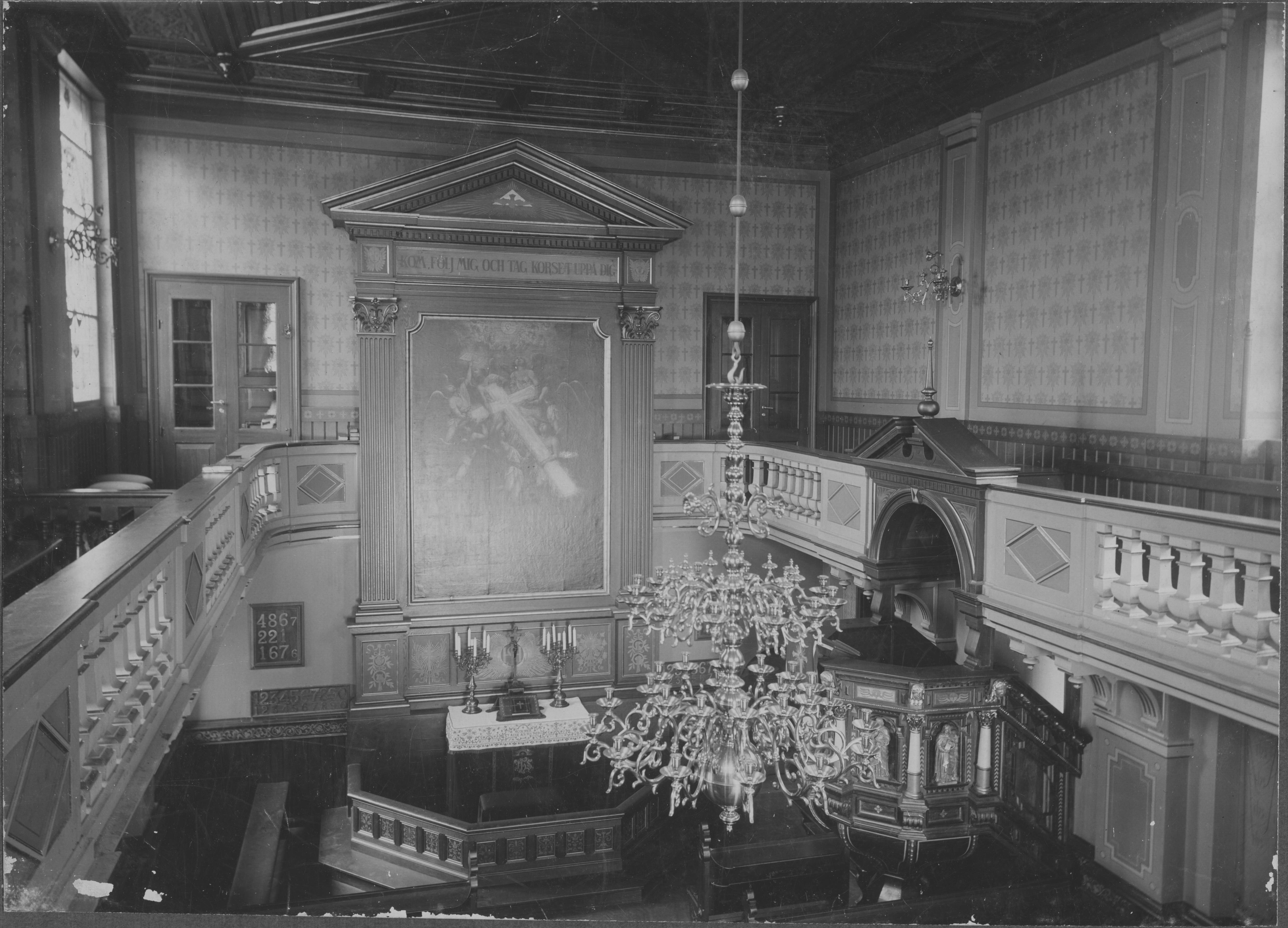 Beskrivning: Koret. Altartavla föreställande änglar som för korset upp mot himlen.1794.