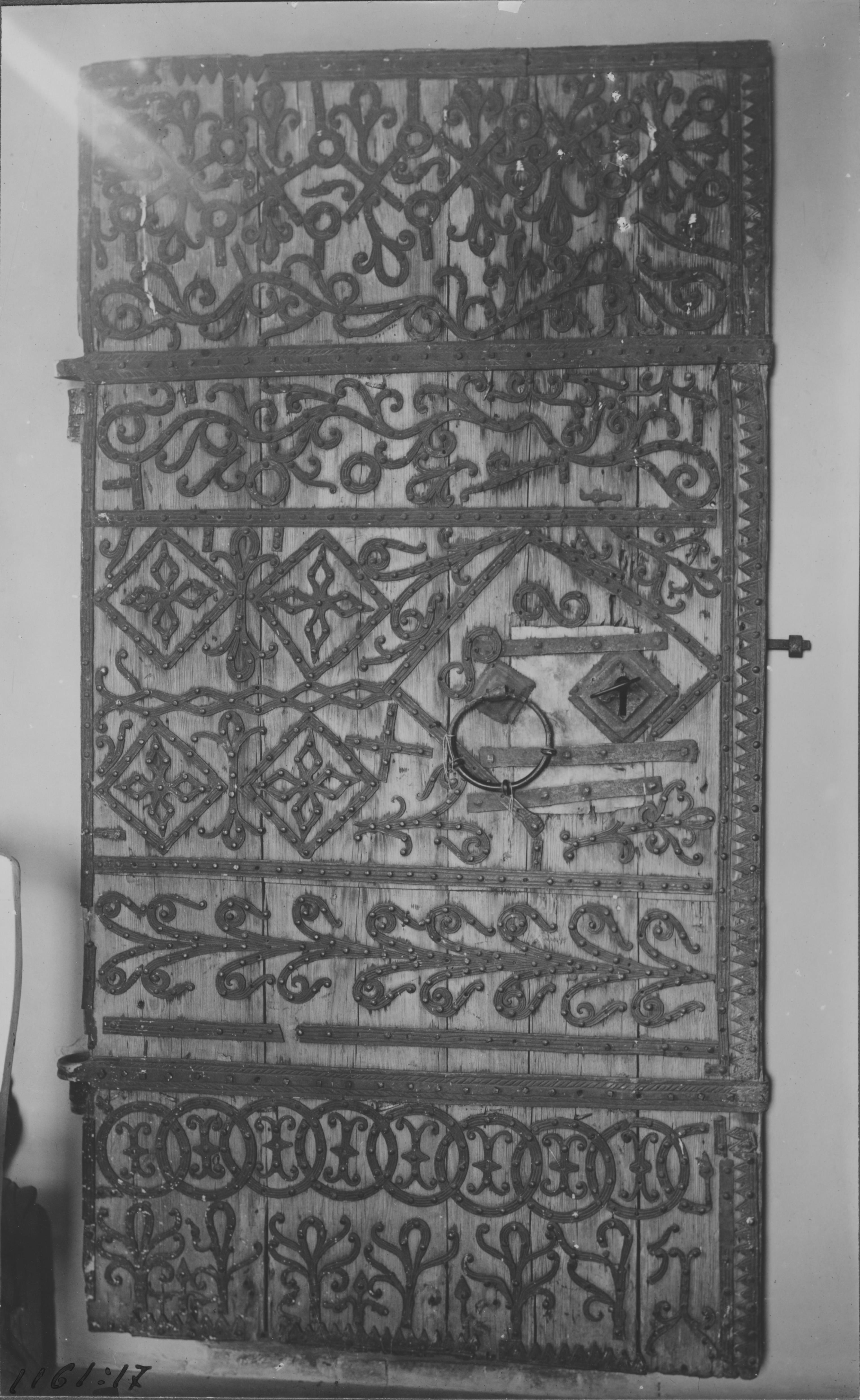 Beskrivning: Järnbeslagen dörr.