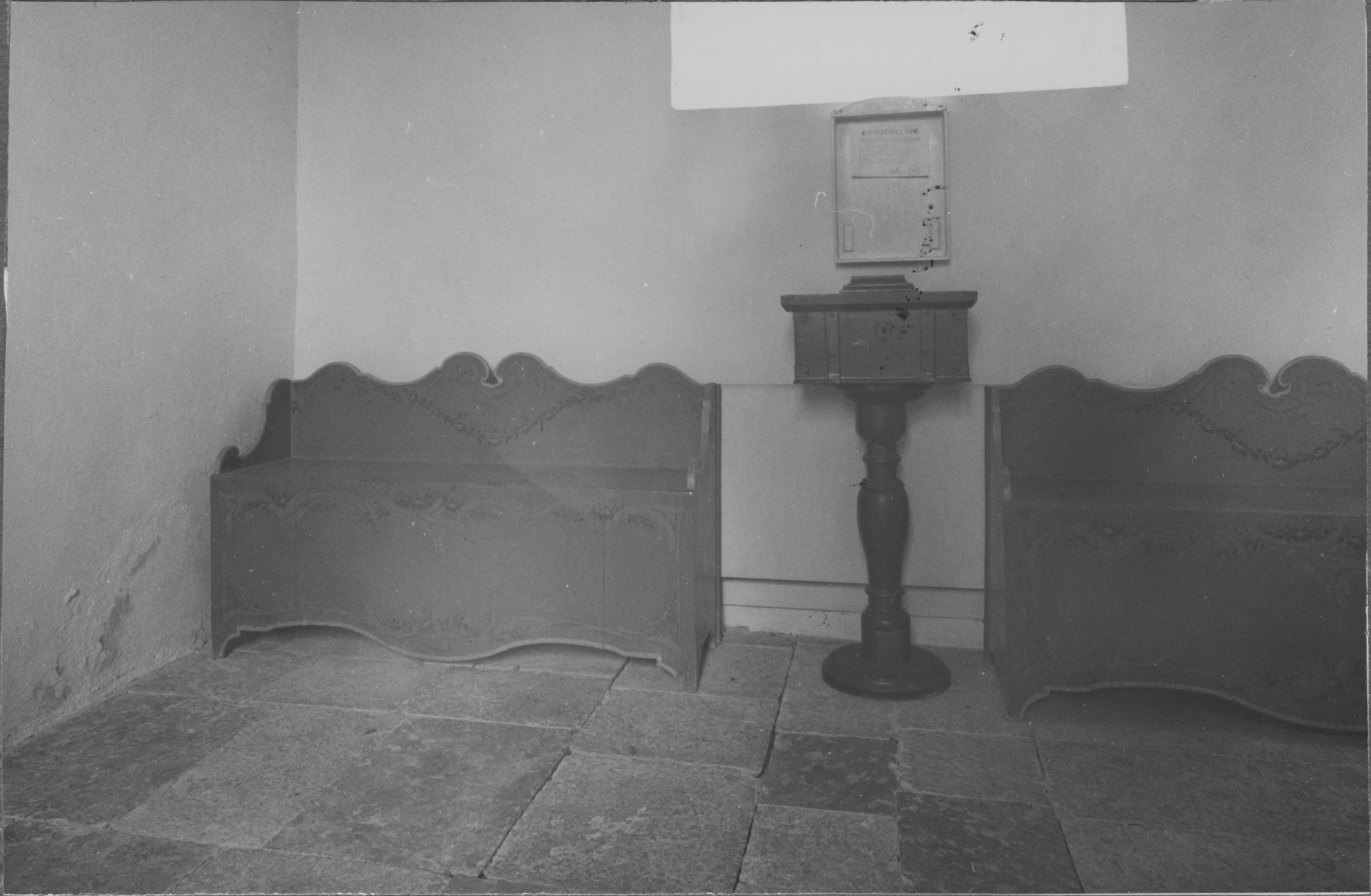 Beskrivning: Brudbänkar från 1774. Sveriges Kyrkor.