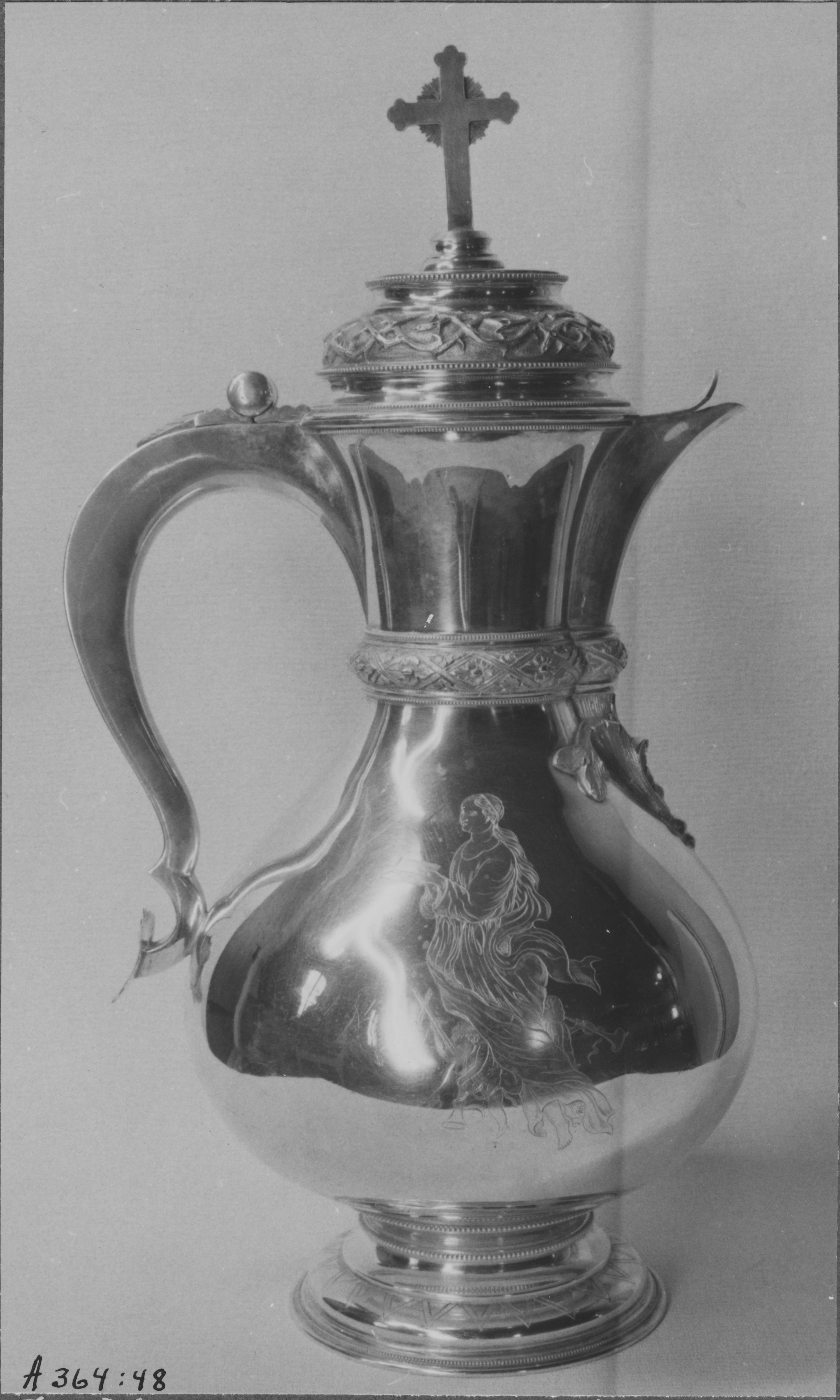 Beskrivning: Vinkanna av silver från 1878. Sveriges Kyrkor.