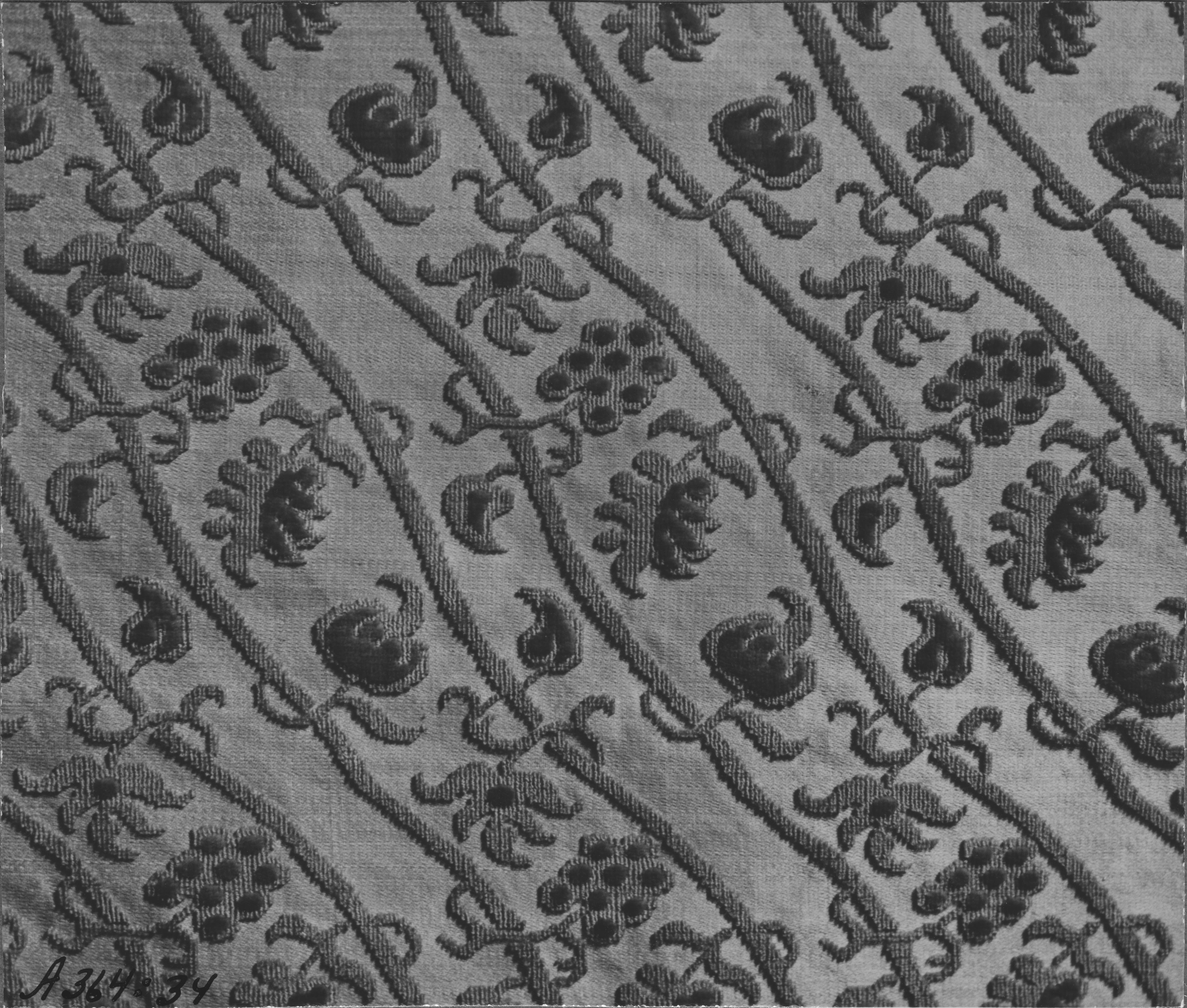 Beskrivning: Mässhake från 1632, detalj av sammeten. Sveriges Kyrkor.