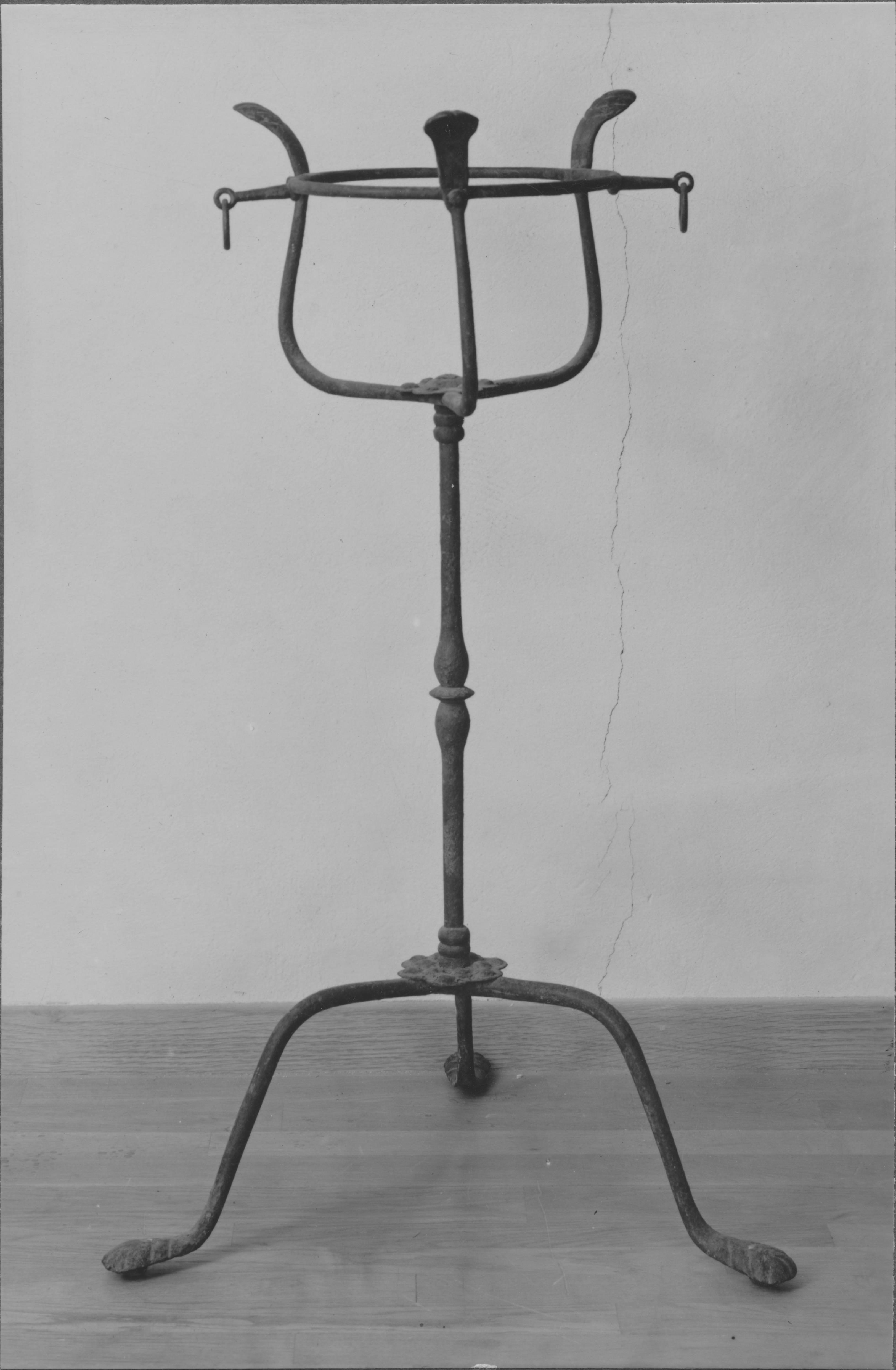 Beskrivning: Smidesjärn. Ställning till dopfat (?). Medeltid.