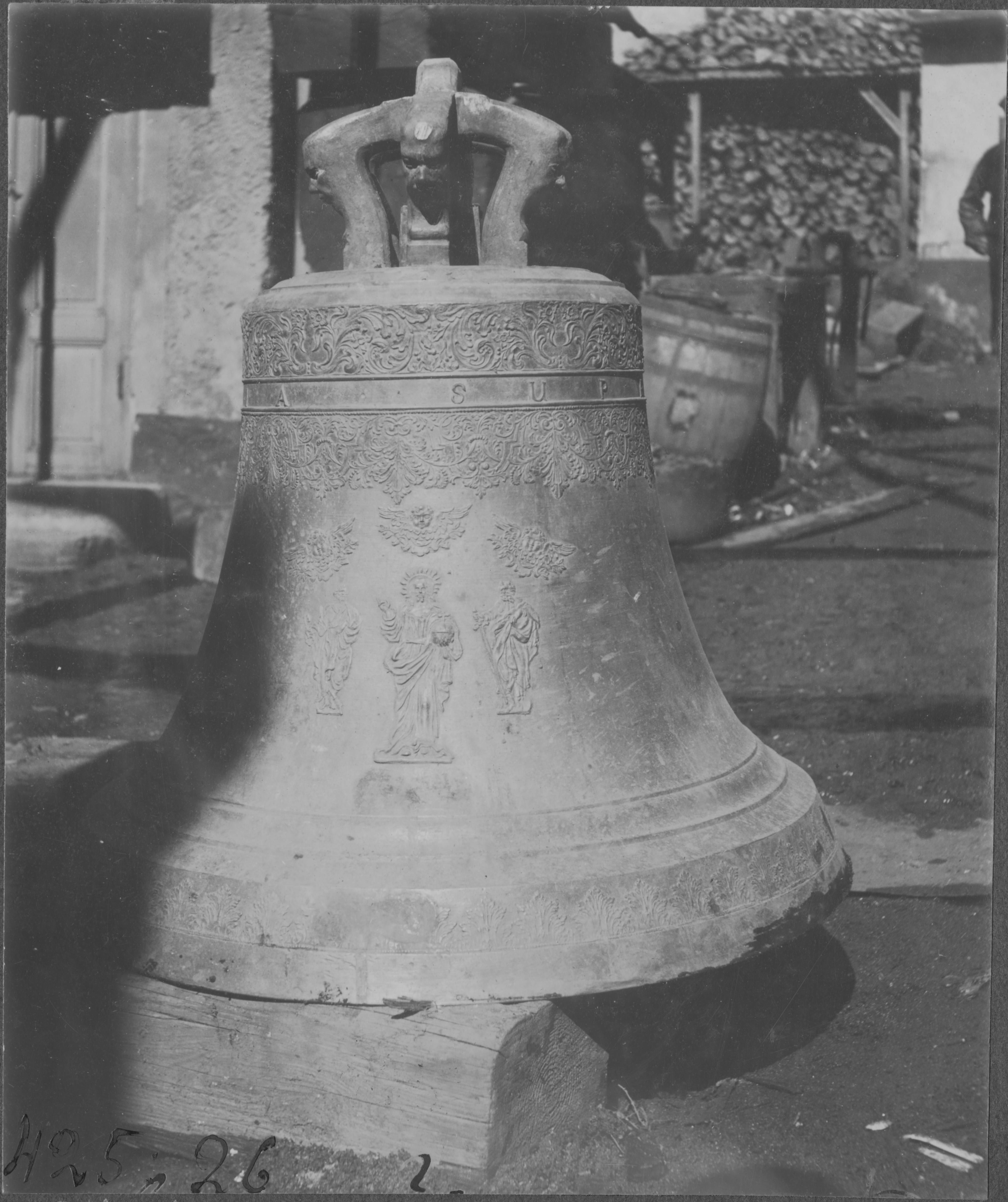 Beskrivning: Klocka av malm.