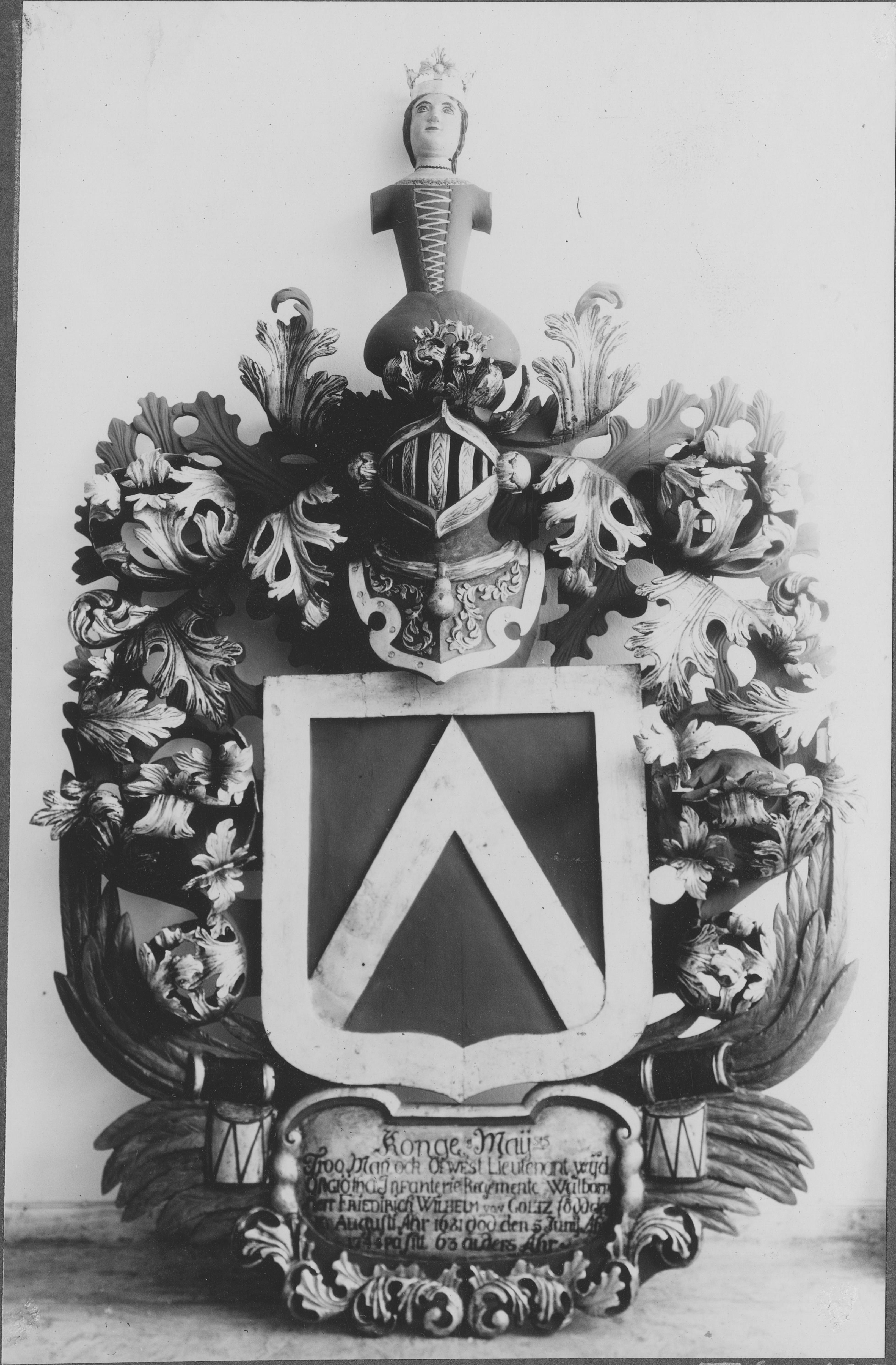 Beskrivning: Epitafier över Friederich von Goltz, 1774. Av skulpterat och målat trä. Efter behandling.