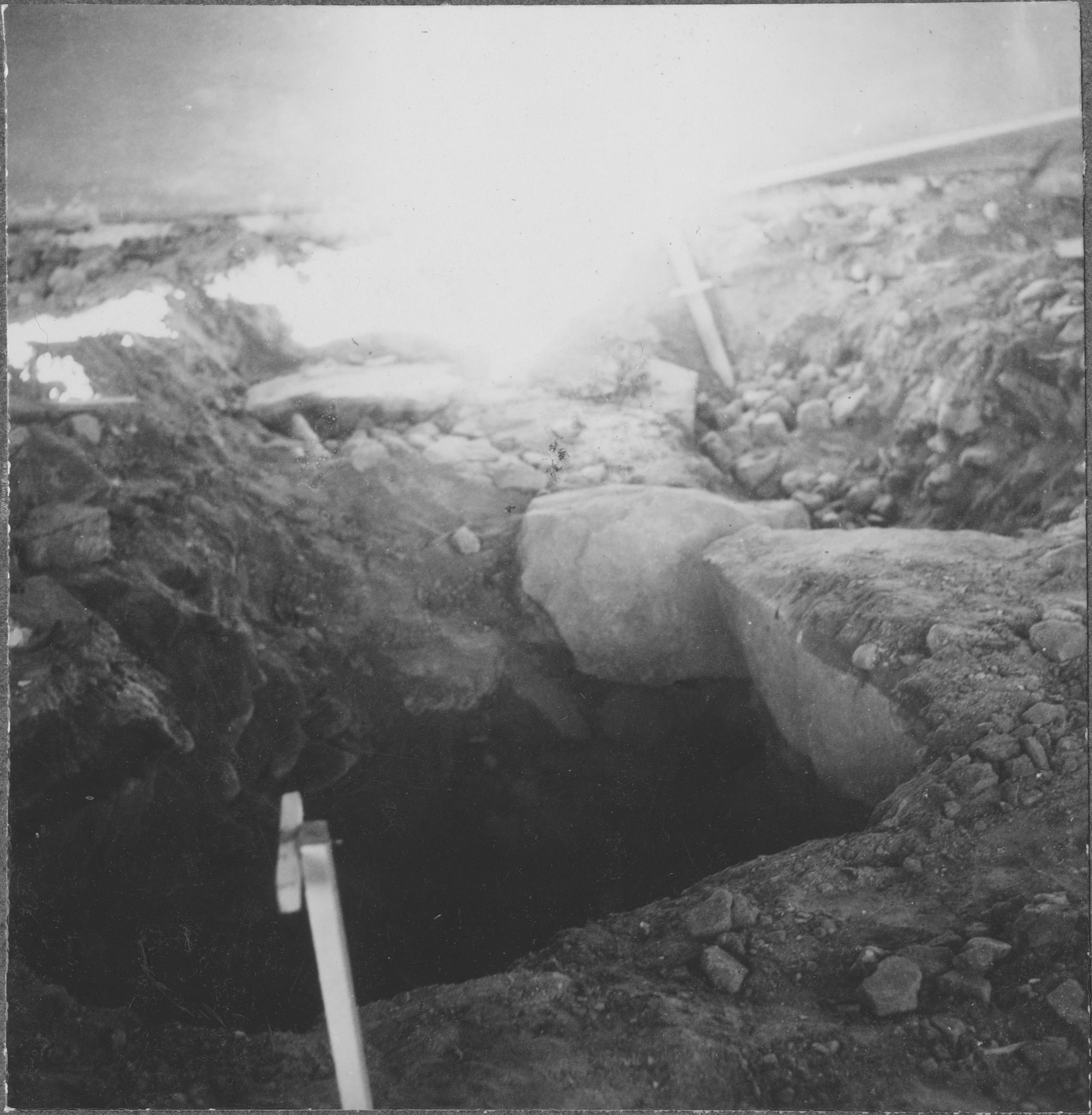 Beskrivning: Öppning till gravkammare. Planen = H.
