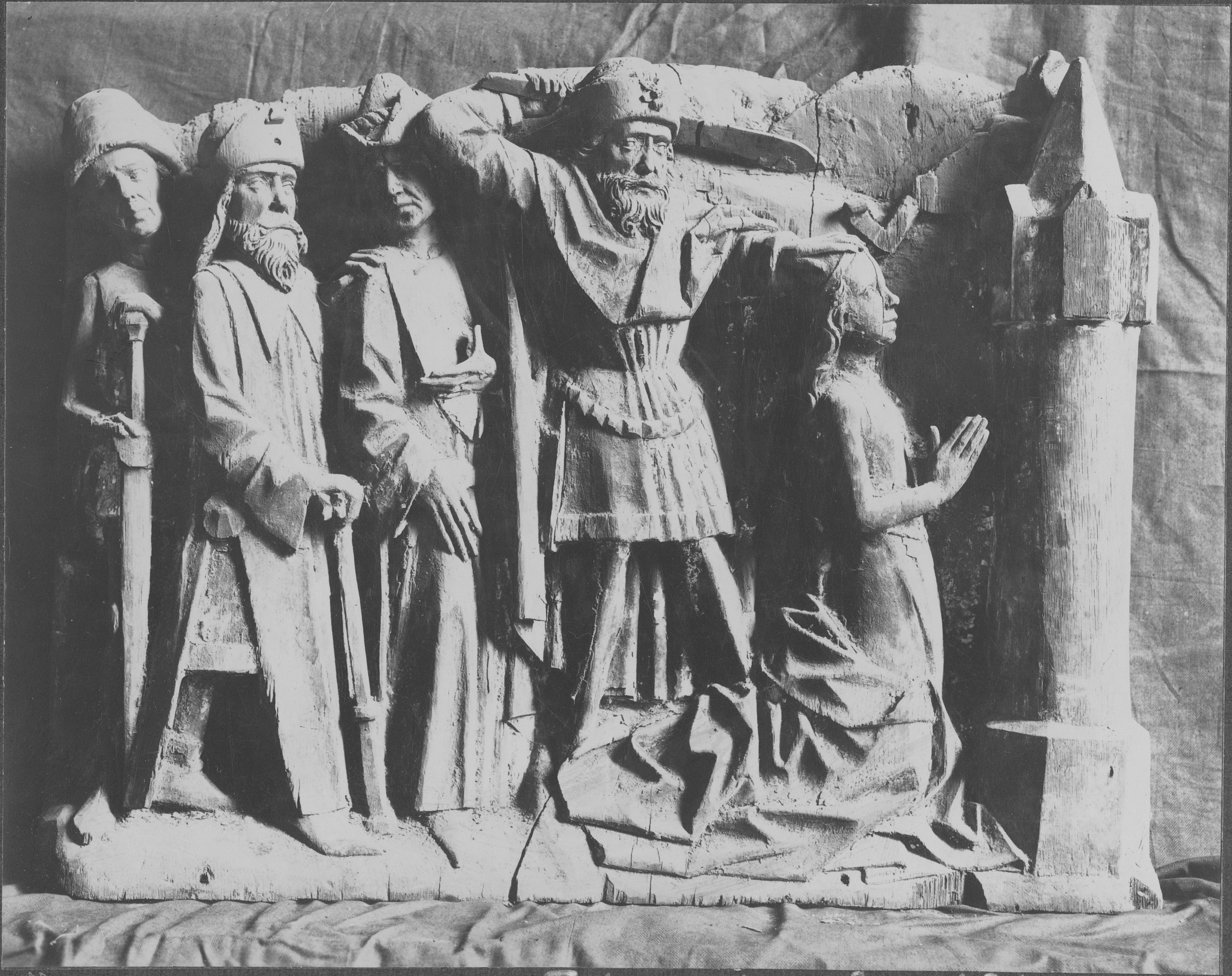 Beskrivning: Altarskåp från den medeltida kyrkan, riven 1827. Detalj; den heliga Barbaras martyrium. Östergötlands Museum.