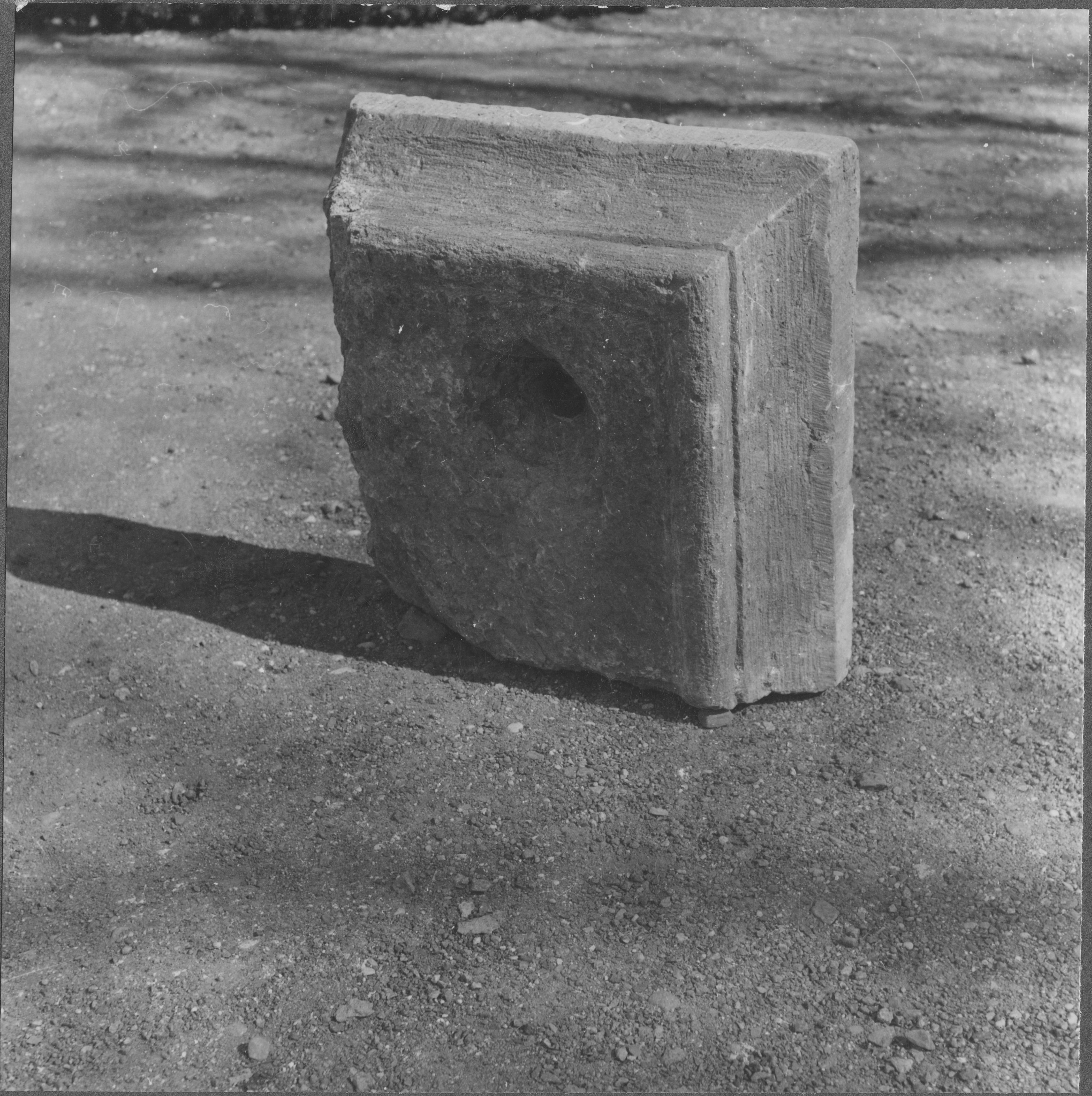 Beskrivning: Piscina (?), huggen utskårad kalksten.