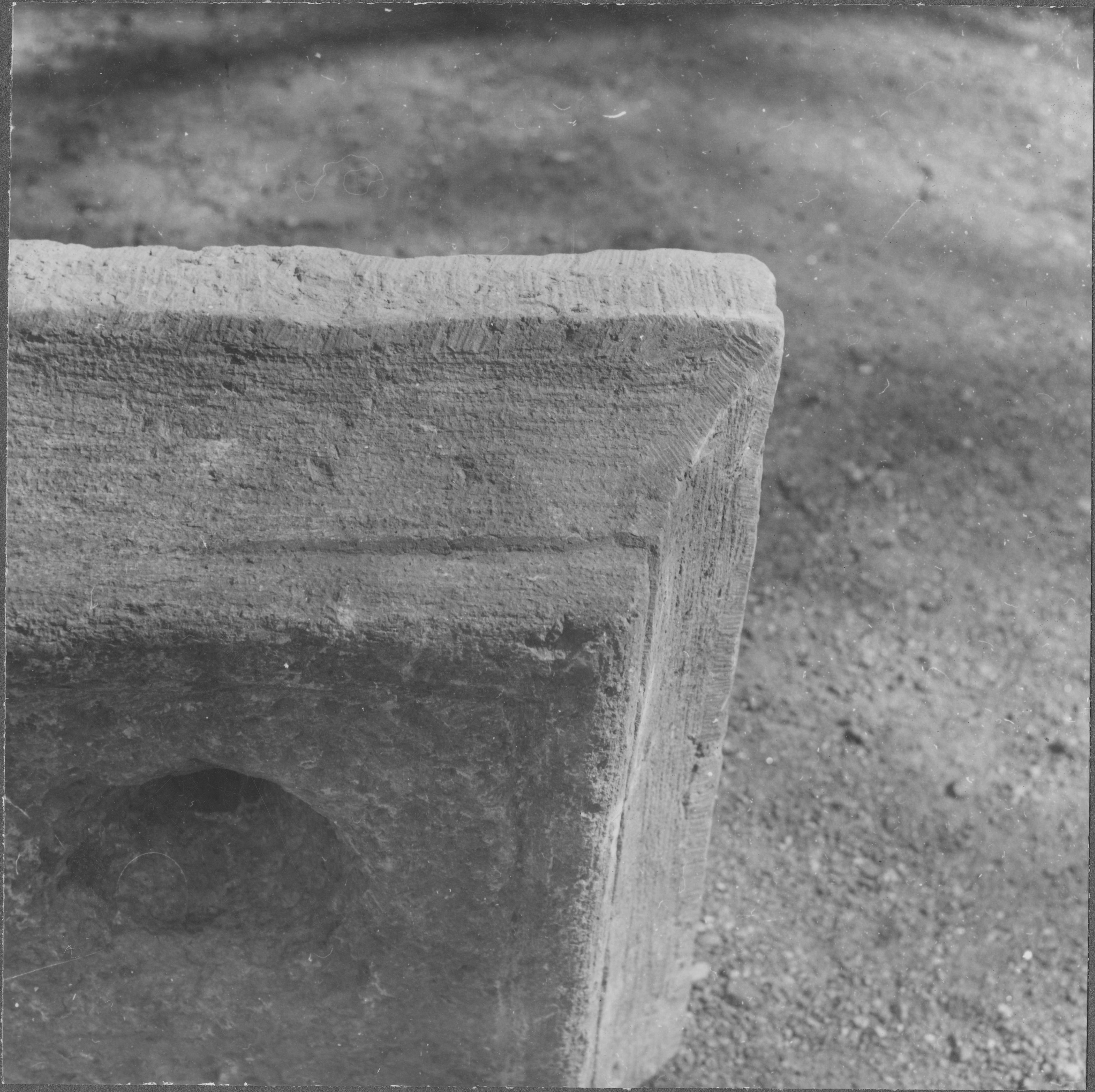 Beskrivning: Piscina (?), huggen utskårad kalksten.